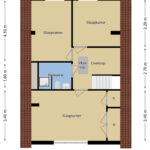 Zolderverdieping met stahoogte in de nok en veel opbergmogelijkheden.