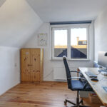 Op de 1e verdieping vinden we 3 zeer volwaardige slaapkamers (waarvan de grootste riant te noemen is) en een in 2019 gemoderniseerde badkamer met o.a. een 2e toilet en inloopdouche. Middels een vlizotrap is de zolderverdieping met stahoogte in de nok bereikbaar.