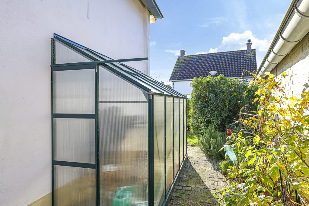 Deze gezinswoning met veel lichtinval ligt op een zonnig gelegen hoekperceel met meerdere terrassen, een gezellige TERRASOVERKAPPING (bij de keuken) en een grote, aangebouwde VERANDA en SCHUUR. De oprit vóór de garage biedt plaats aan 2 auto’s naast elkaar op eigen terrein.