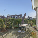 Aan de zuid- en westzijde zijn eveneens terrassen aangelegd, onder meer met natuursteen. Doordat er een groene Portugese laurier is aangeplant (blijft het gehele jaar groen) geniet je ook hier veel privacy. Hou je van de zon dan is het hier de gehele dag genieten. Hou je van groen, tuinieren en misschien wel een moestuintje, dan zal je de verschillende soorten fruit aanspreken. Denk daarbij aan een vijg, een mispel, een pruim en een gele kornoelje. Ook ontbreekt de walnoot niet. De tuin aan de achterzijde is afgesloten middels een nieuwe poort (achterom).