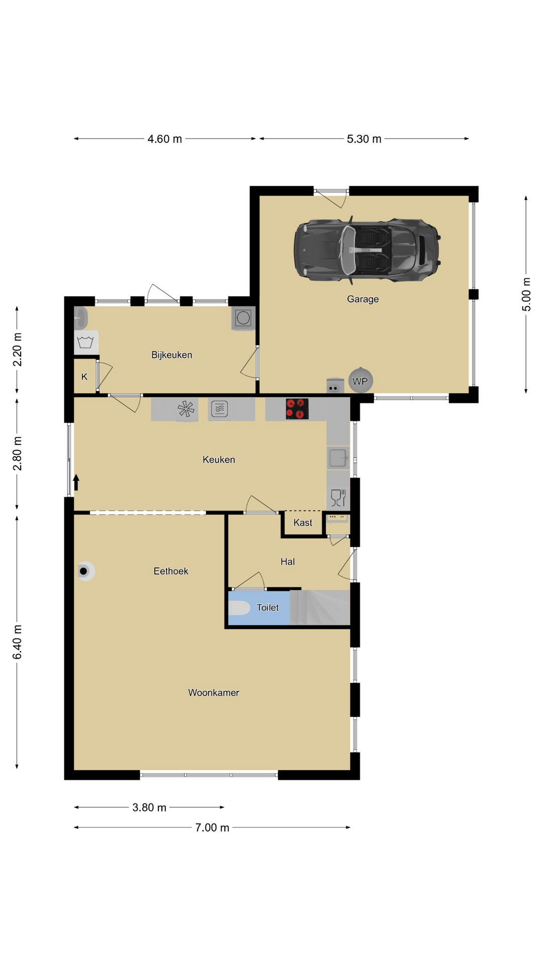 Inpandige, dubbele garage met CV-ketelopstelling, warmtepompboiler, zoldervliering en tuindeur.