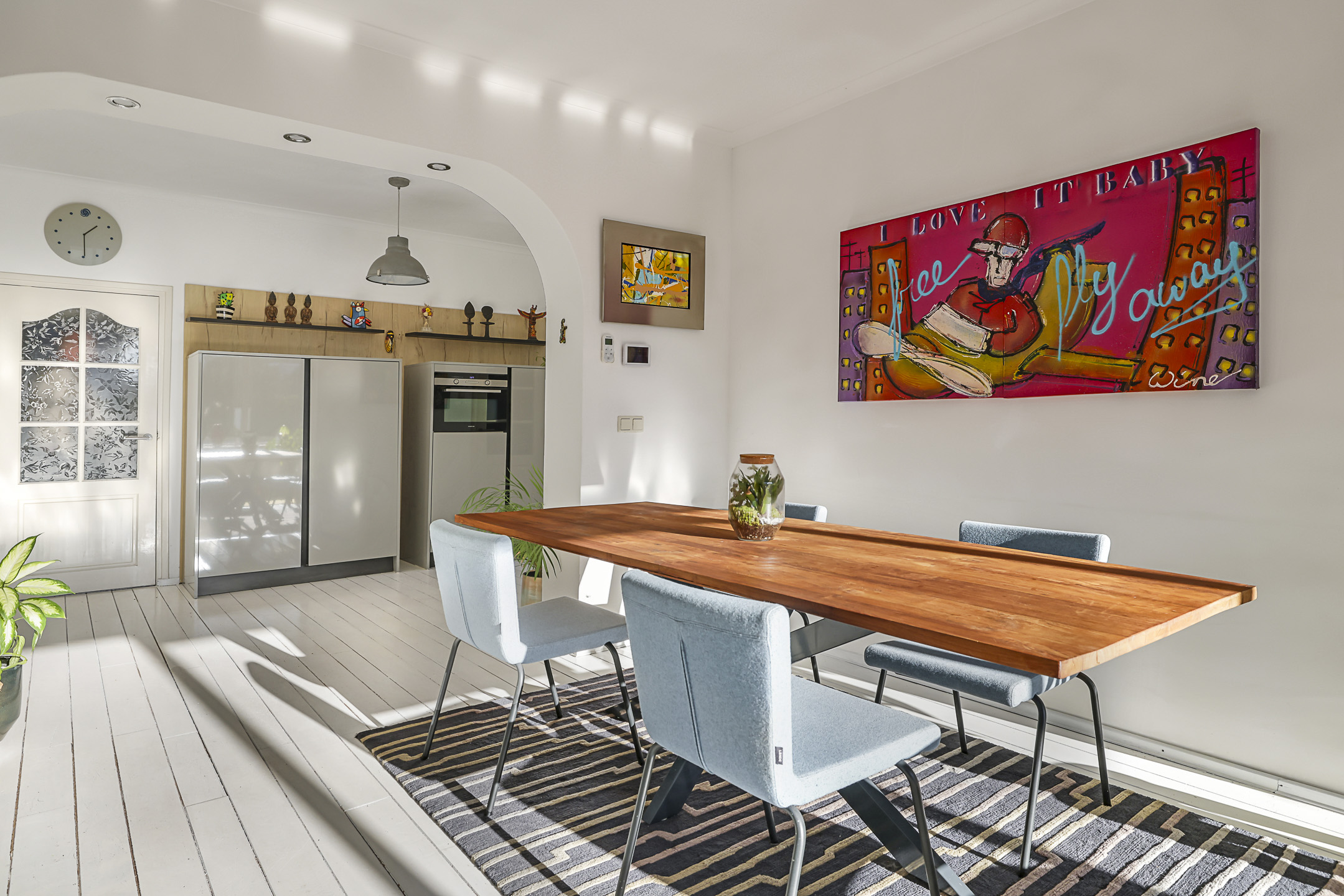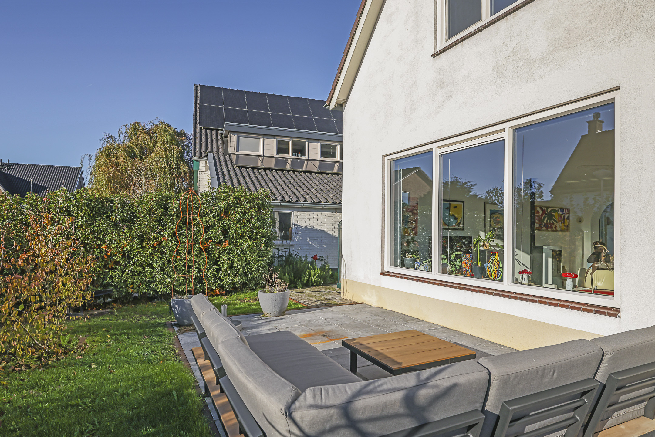 Quote van de makelaar: “Wat een verrassend leuk huis is dit. Er is veel aandacht besteed aan kleurrijke, speelse details, afwerking en wooncomfort. Tevens is er in de afgelopen jaren fors geïnvesteerd in kozijnwerk, beglazing en duurzaamheid waardoor je in een gespreid bedje terecht komt. De dubbele (inpandige) garage met nieuwe, elektrische sectionaaldeuren alsmede de leuke (overdekte) zithoeken in de tuin maken het plaatje compleet.”