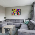 Een vaste trap brengt je naar de 2e verdieping die eveneens verrassend ruim is opgezet. Dit komt doordat de nok meer dan 3 meter hoog is. Deze woonlaag is ingedeeld met een voorzolder met washoek, een volwaardige slaapkamer en een grote opbergruimte. Deze 4e slaapkamer is 10m2 groot en dat is gemeten vanaf 1,5 meter hoogte. Eigenlijk is deze kamer dus nog groter. Het grote dakvenster versterkt het ruimtelijke gevoel.
