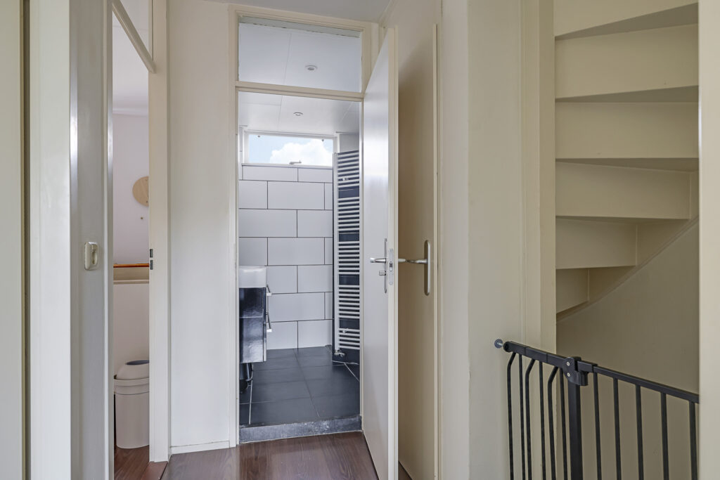 Via een stijlvolle trapopgang in de hal (met traprenovatie en verlichting) bereiken we de 1e verdieping. Deze woonlaag is opvallend ruim ingedeeld. Waar we vaak 2 grote slaapkamers en 1 kleinere tegenkomen, zijn de verhoudingen tussen de slaapkamers mooi in balans. De ouderslaapkamer is zelfs 14m2 groot waardoor je hier met gemak een groot 2-persoons bed en een linnenkast kwijt kunt. Beide kinderkamers zijn met 9m2 nagenoeg gelijk aan elkaar waardoor je kinderen ieder een gelijkwaardige slaapkamer kunt geven. Dit komt ook doordat zowel de voor- als achtergevel recht omhoog lopen in plaats dat je op de 1e verdieping al ruimte verliest door een schuin dakvlak.