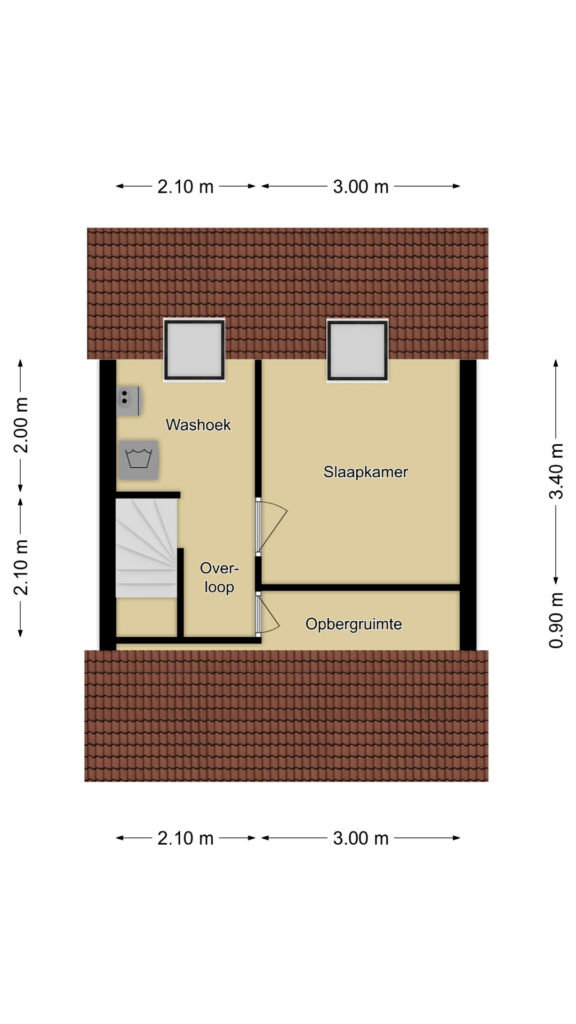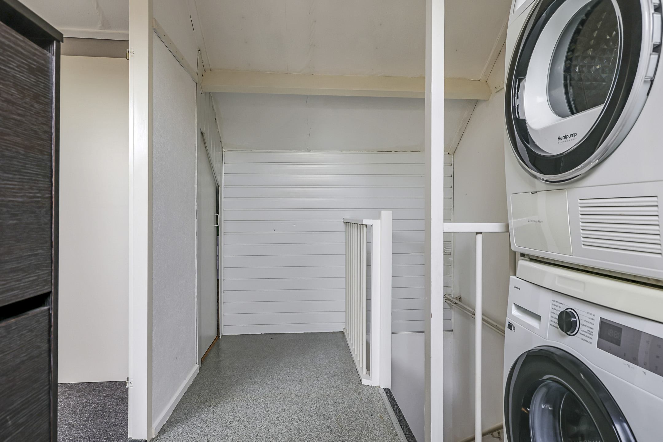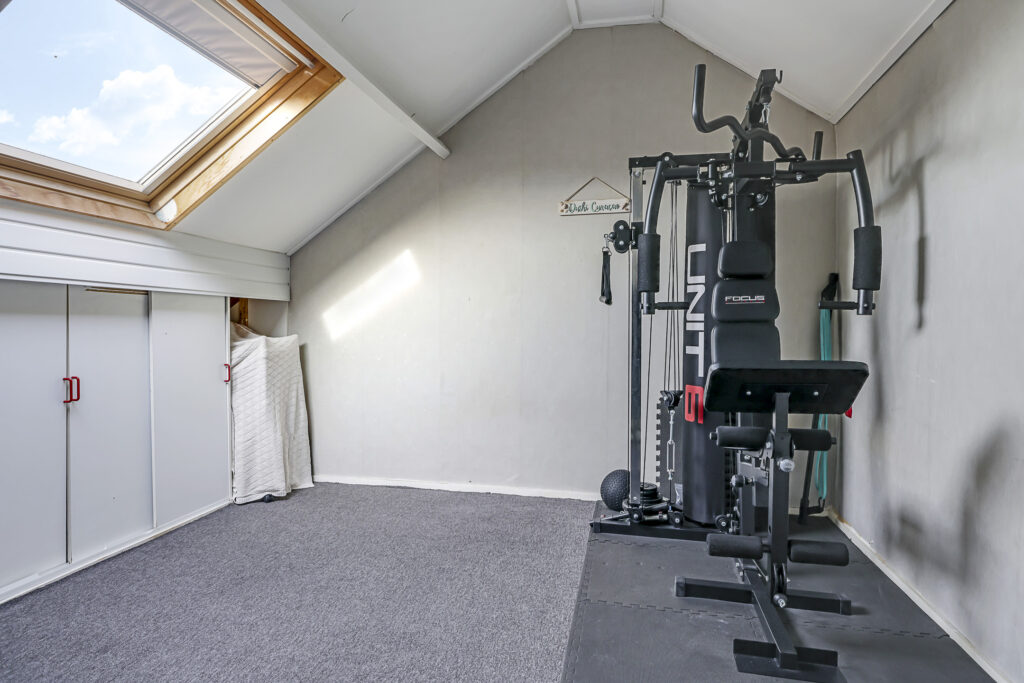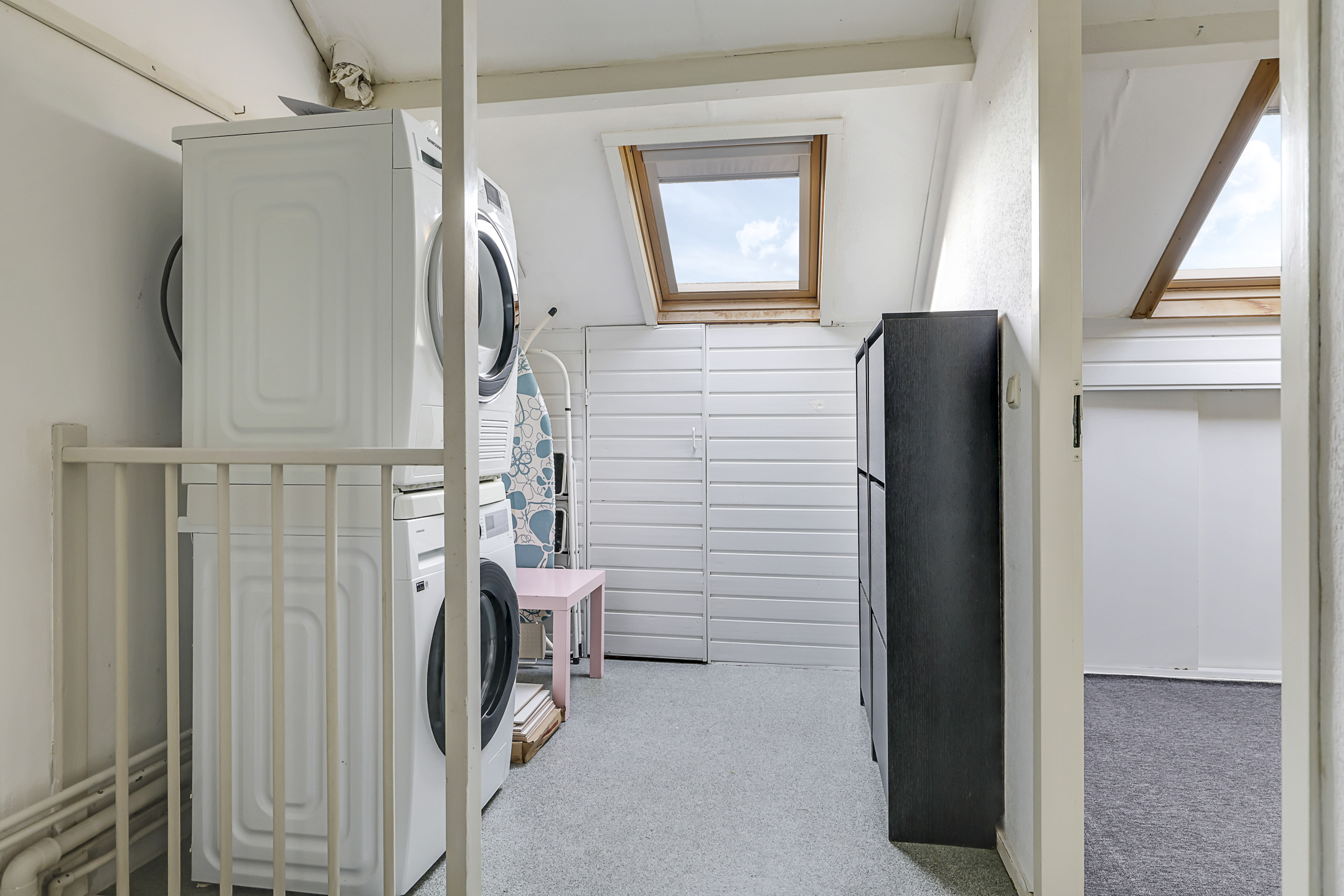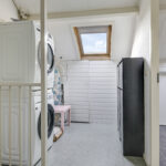 Op de voorzolder kun je de wasmachine en wasdroger kwijt. Hier vinden we tevens de CV-ketelopstelling. Het is erg prettig dat ook bij deze washoek een extra dakvenster is geplaatst. Aan de andere zijde is er een afgesloten berging gecreëerd waar je de nodige (seizoen)spullen kunt opbergen.