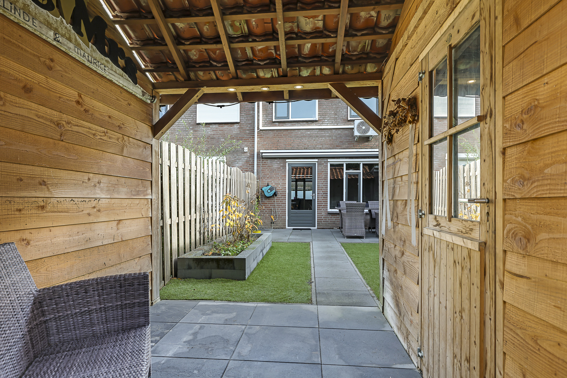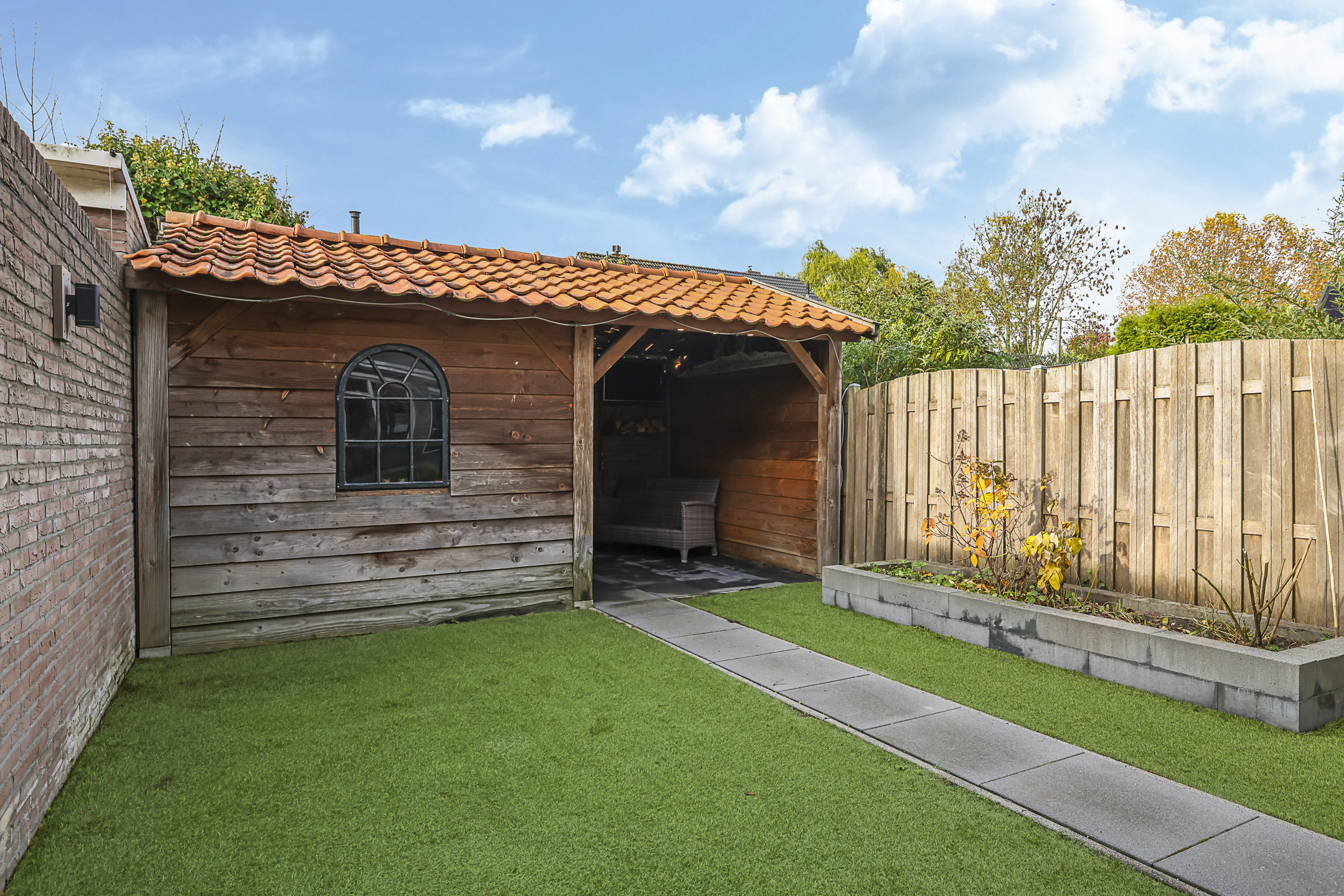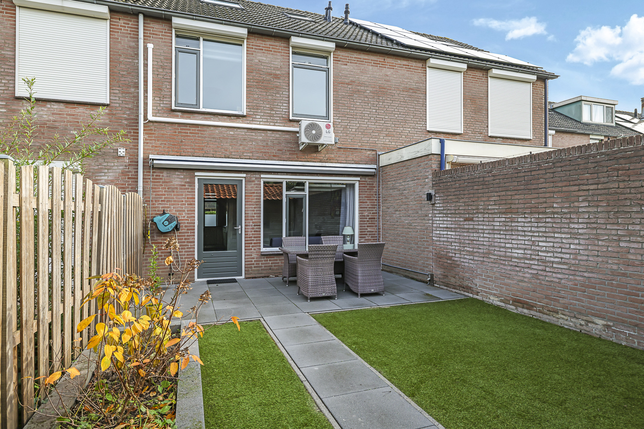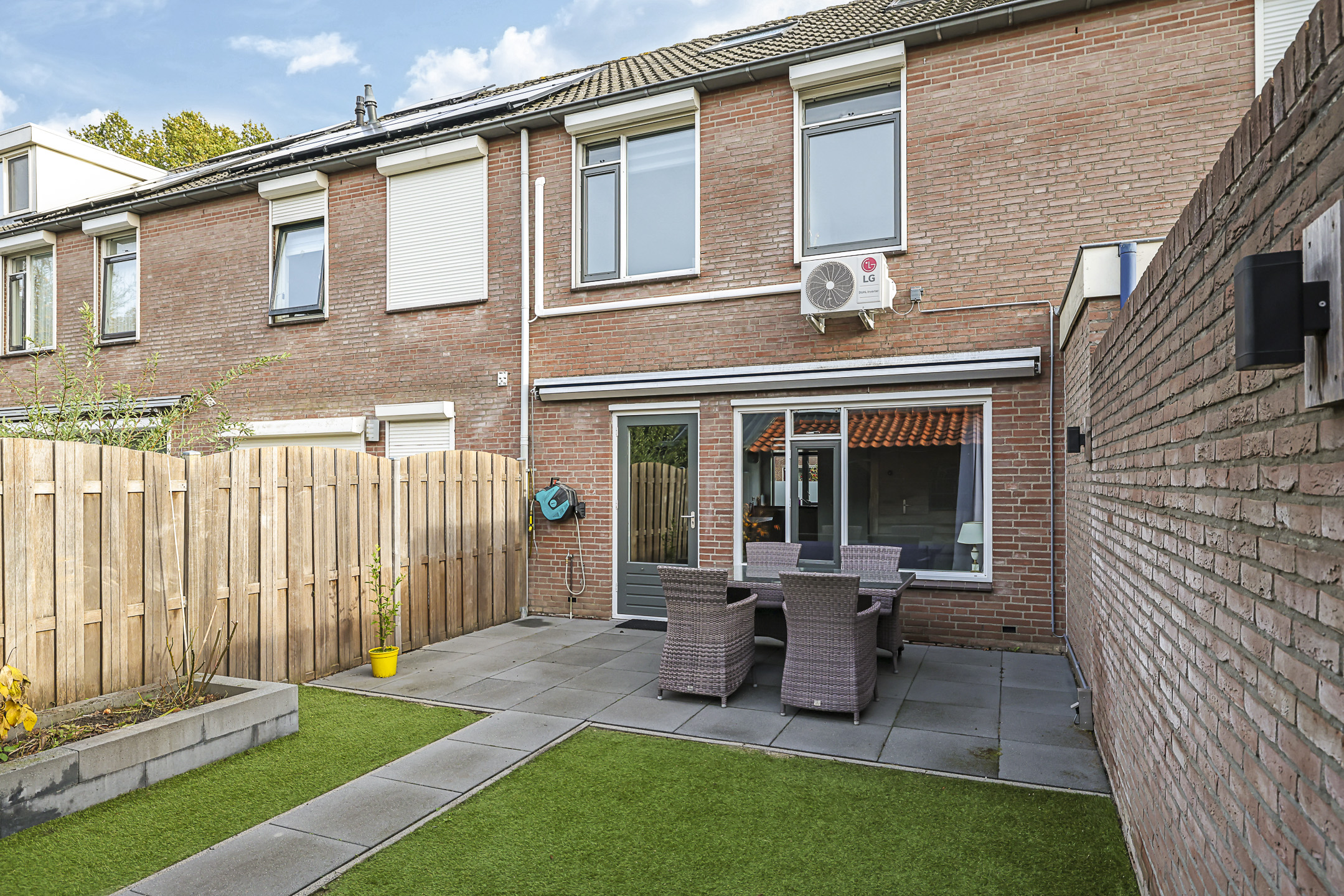 Achtertuin is onderhoudsarm (met kunstgras) aangelegd