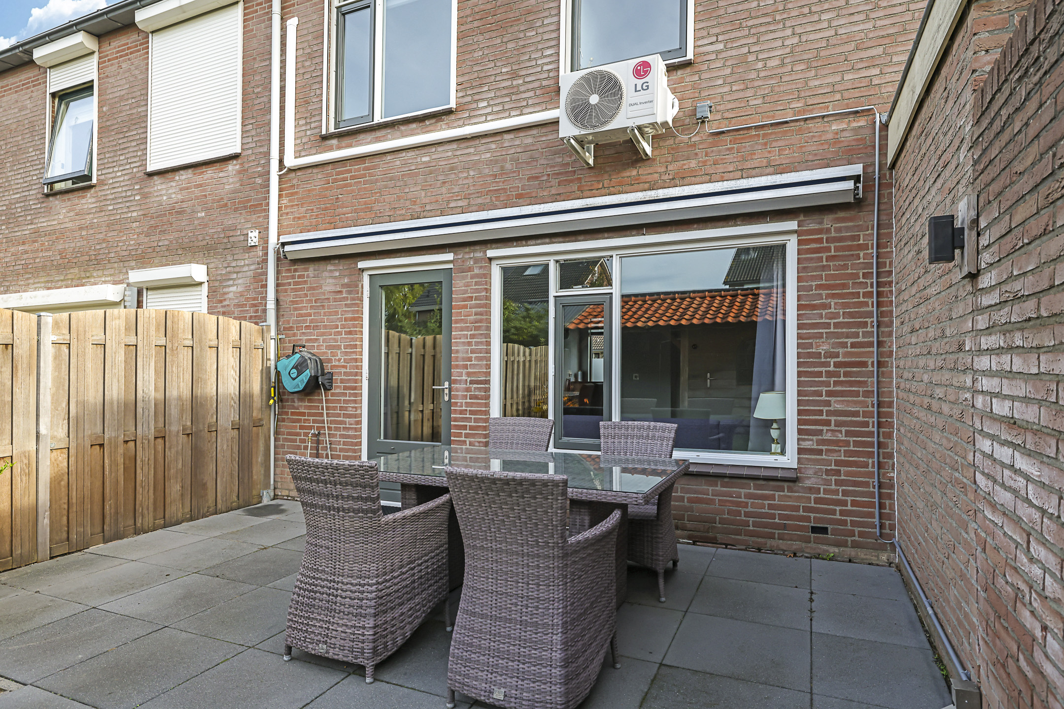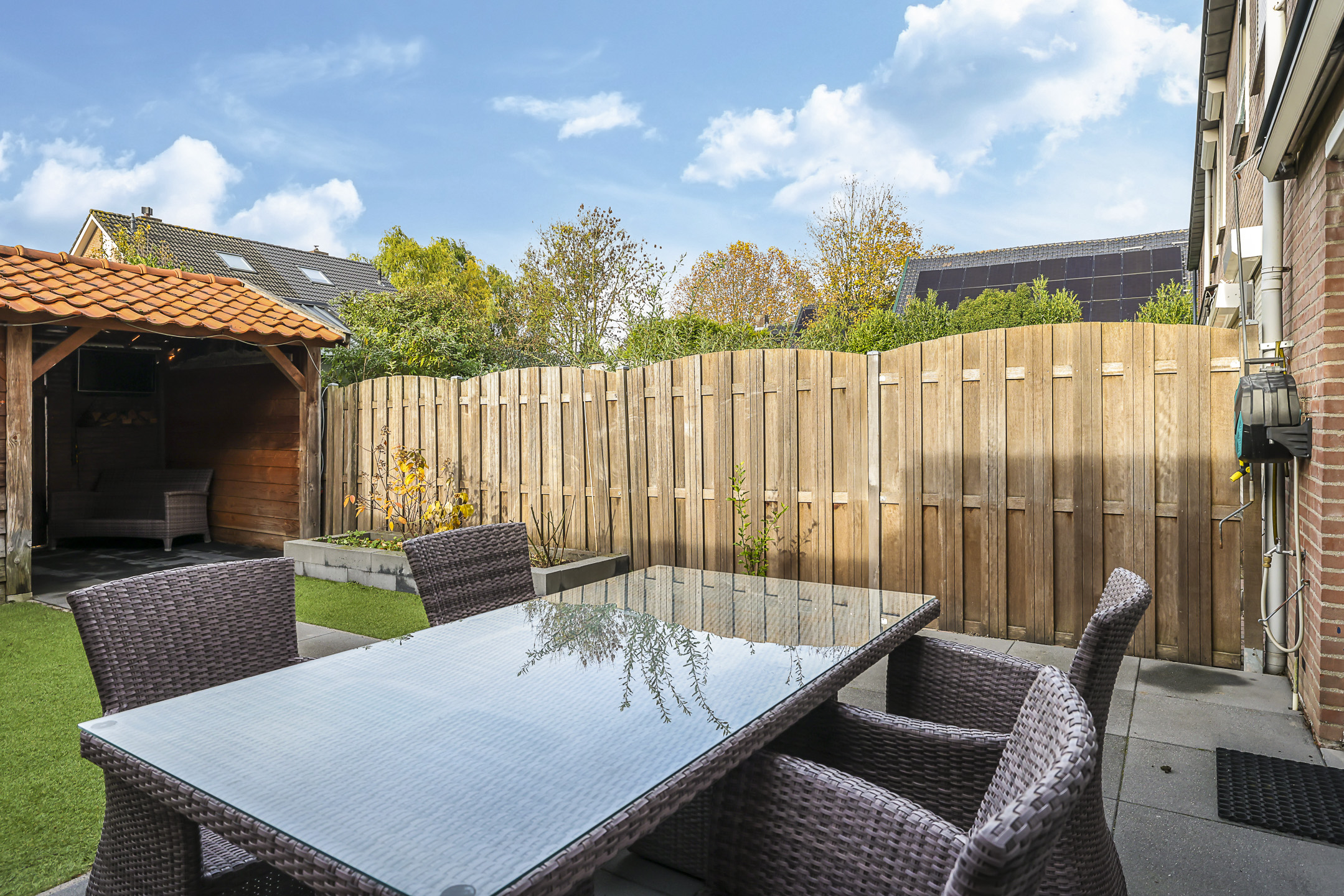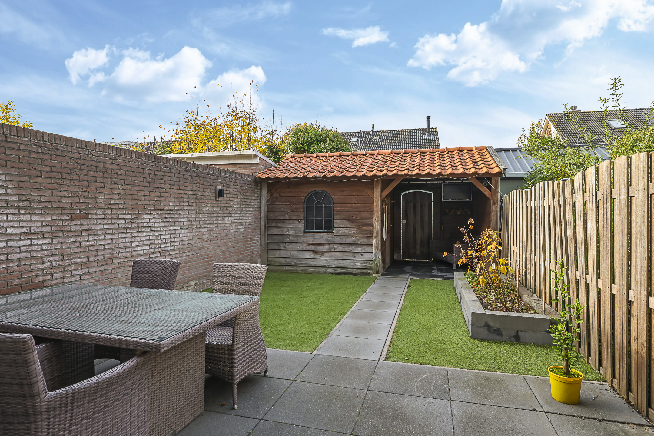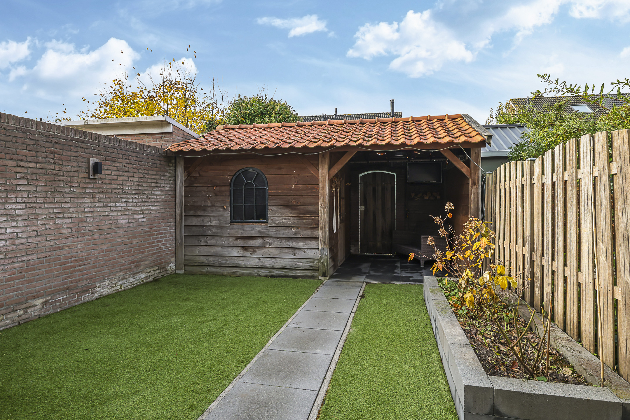 Achtertuin is onderhoudsarm (met kunstgras) aangelegd