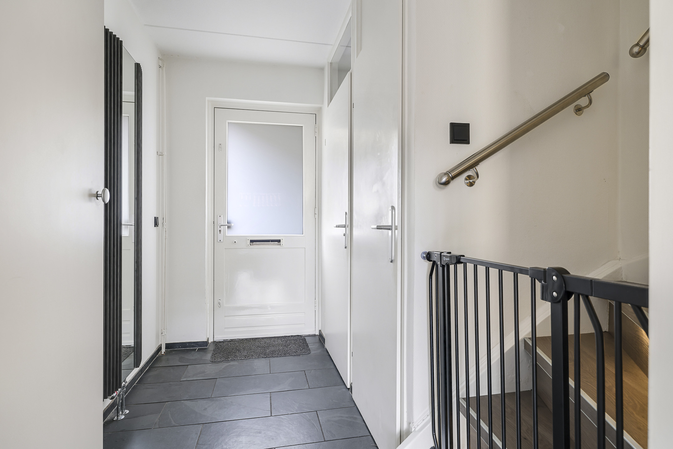Hal/entree met meterkast, toilet, ruime inbouwkast (garderobe) en trapopgang