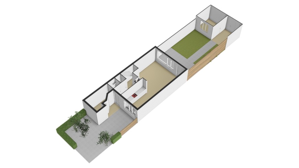 Aangebouwde berging aan de voorzijde van de woning.