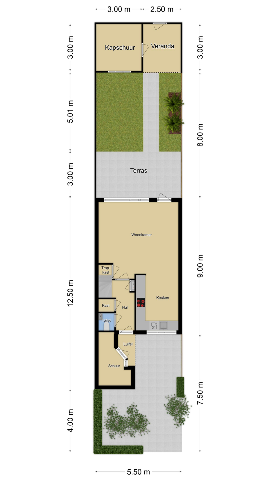 Verrassend leuke, modern aangeklede en praktisch ingedeelde TUSSENWONING, bestaande uit 3 volwaardige woonlagen, een LUIFEL bij de voordeur en een aangebouwde, stenen BERGING. De onderhoudsarme achtertuin heeft optimale bezonning door de zuid/westligging en heeft veel privacy doordat er nauwelijks inkijk is. Achterin de tuin staat een KAPSCHUUR, bestaande uit een schuur en een veranda.