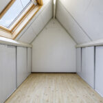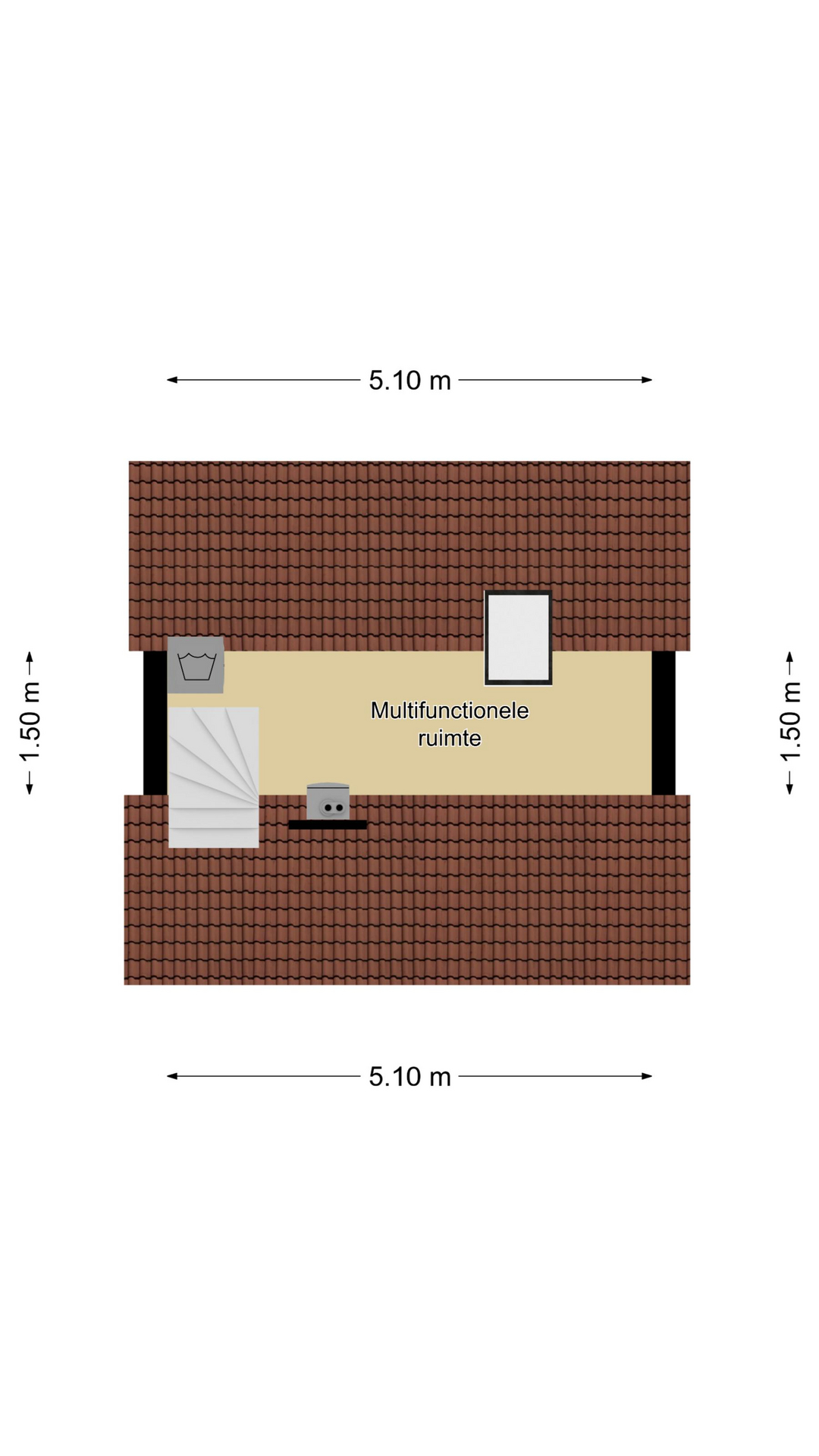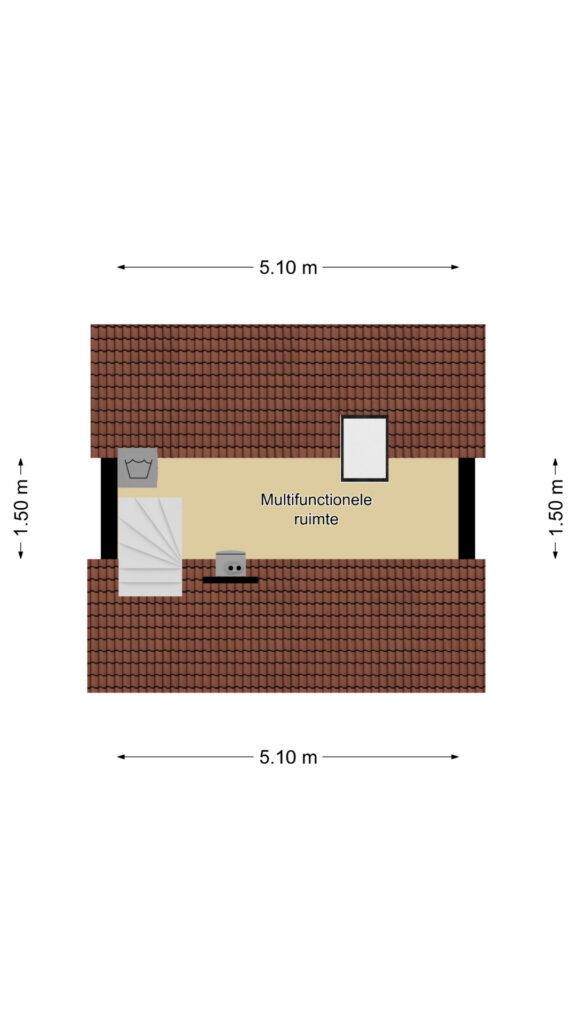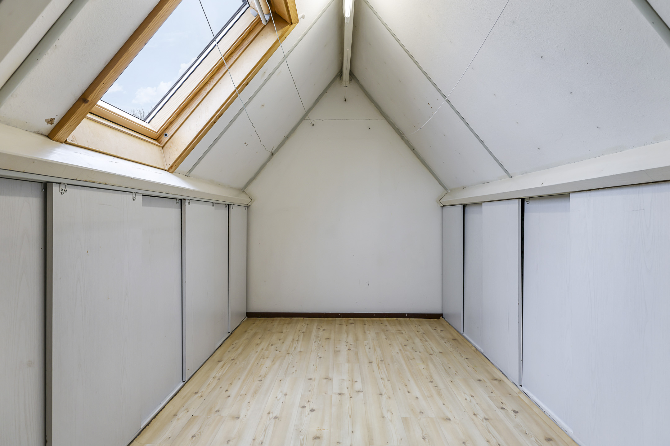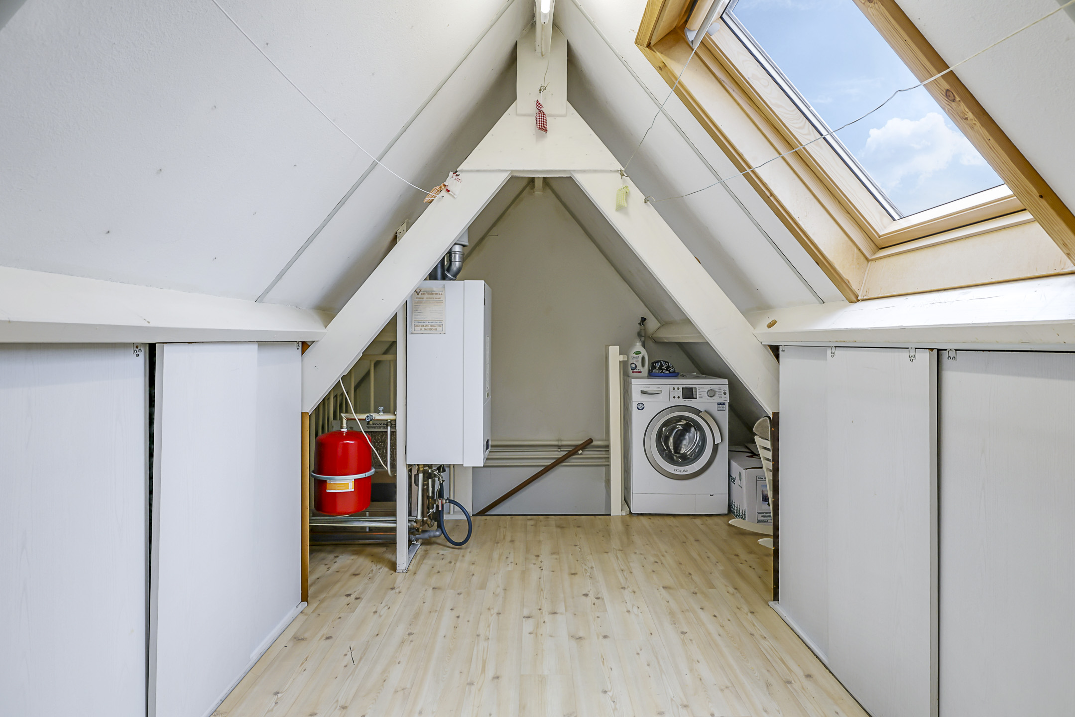 Open zolderruimte met dakvenster, knieschotten, witgoedaansluiting en CV-opstelling