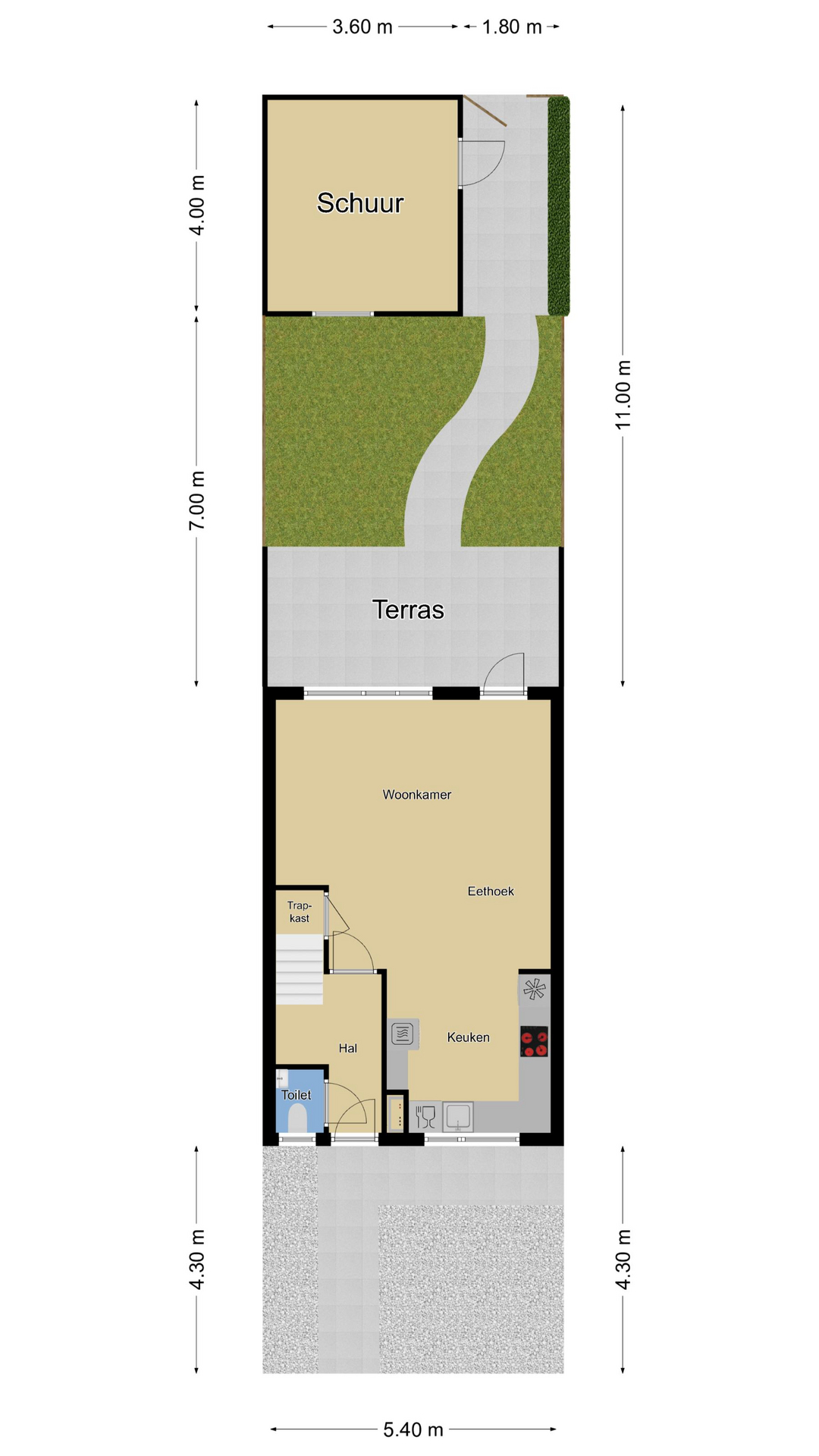 Tuin ca. 11 meter diep