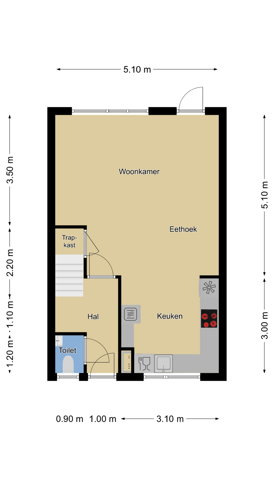 Hal/entree met toilet, meterkast en trapopgang