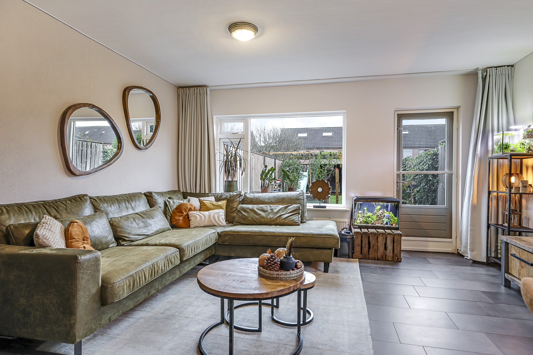 Woonkamer met tuindeur en zijgevelraam