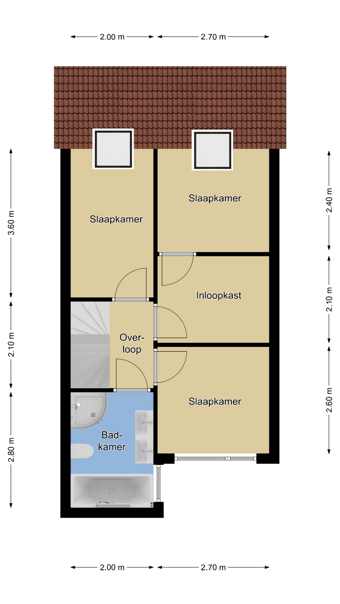 Slaapkamer 4 met knieschotten en 2 dakvensters