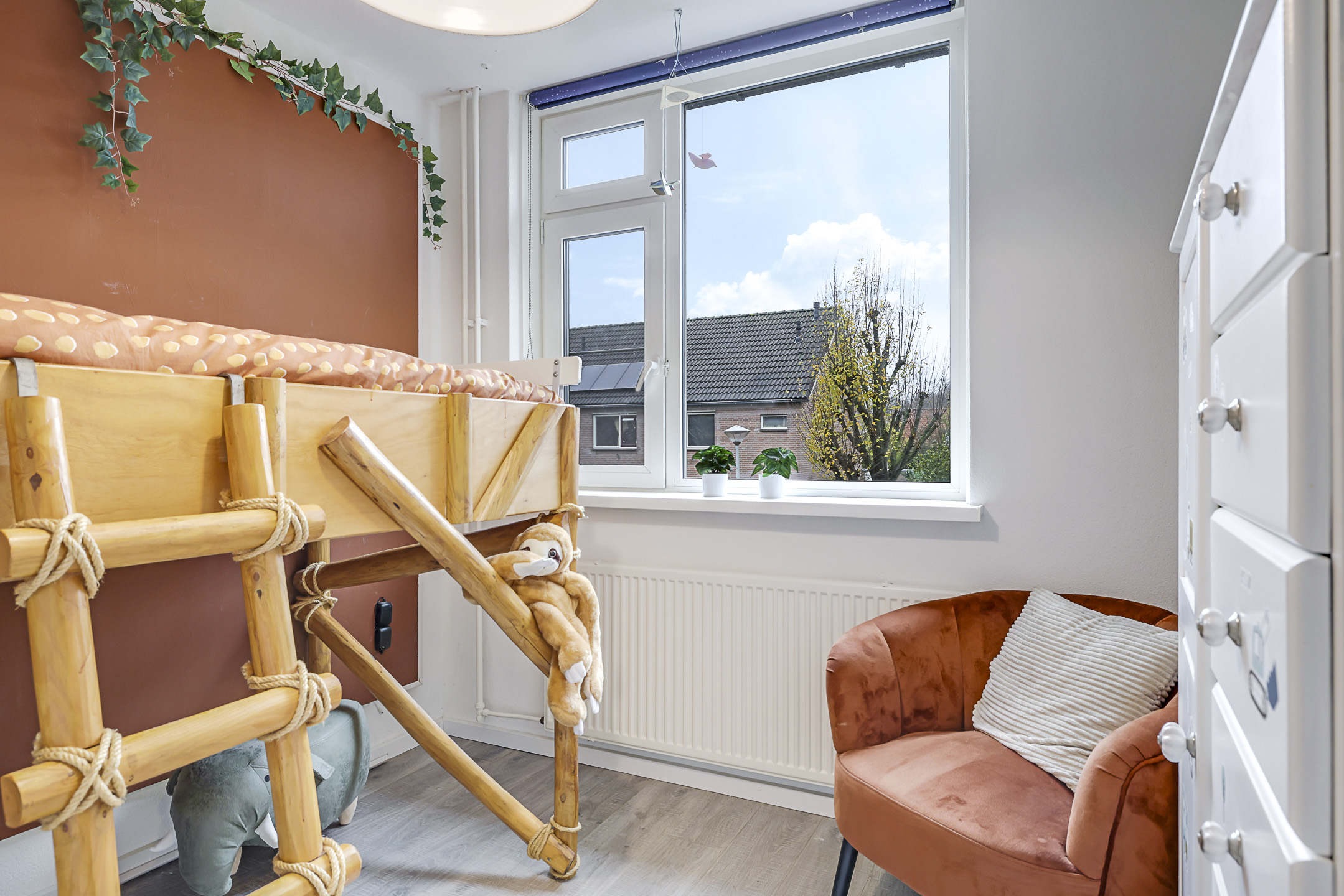 De slaapkamer aan de voorzijde heeft een nieuw raamkozijn gekregen welke is v.v. een draai/kiepraam met inzethor. De slaapkamers aan de achterzijde hebben ieder een groot dakvenster met verduisteringsschermen. Op de overloop is er een airconditioning geplaatst die op een warme zomerdag voor verkoeling kan zorgen.