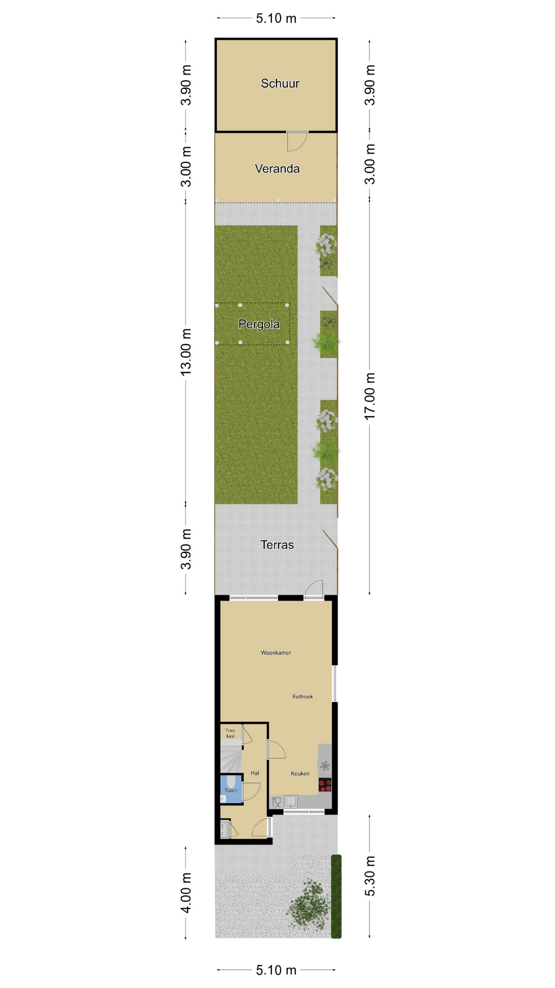 Bijzonder diepe achtertuin met veel vrijheid