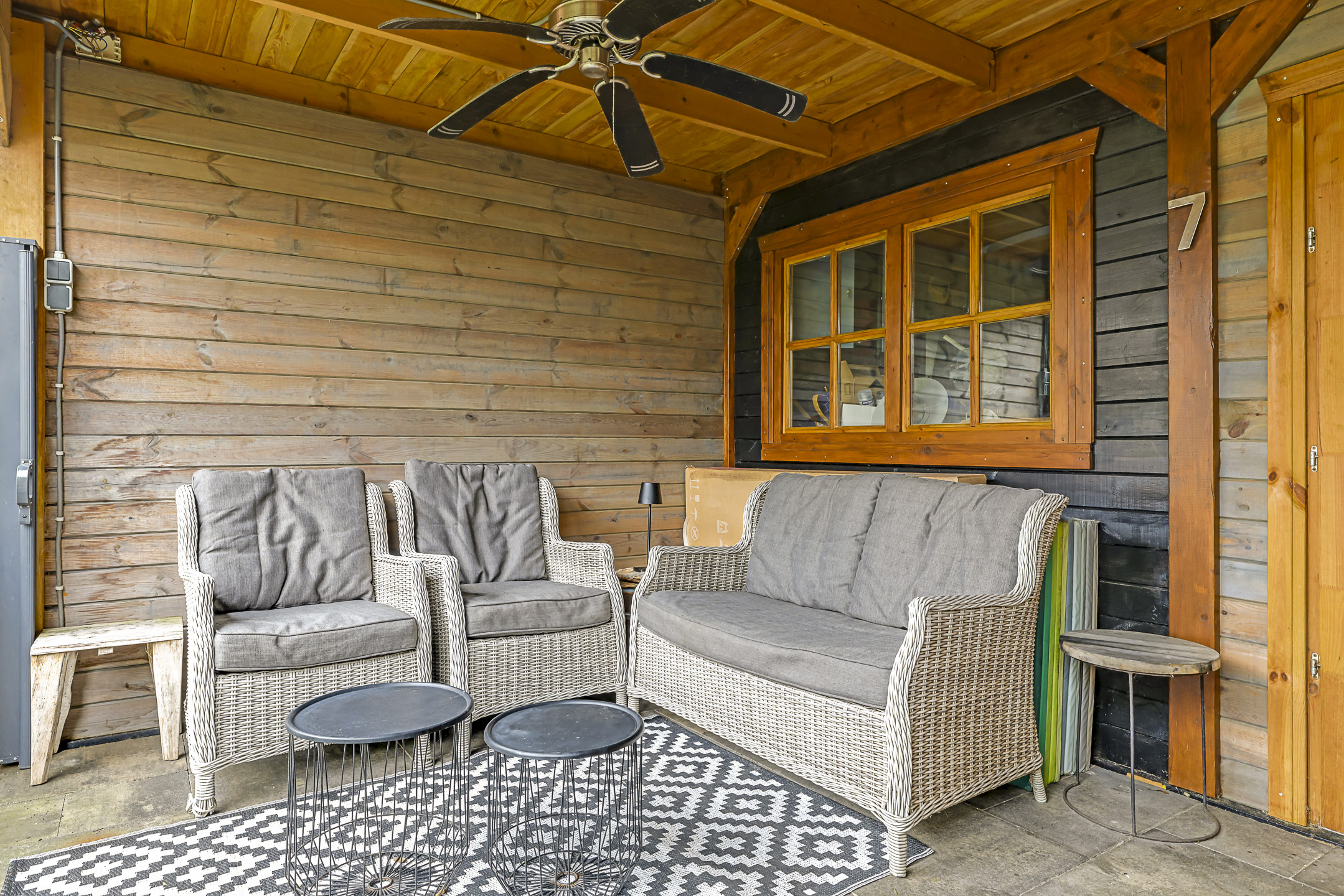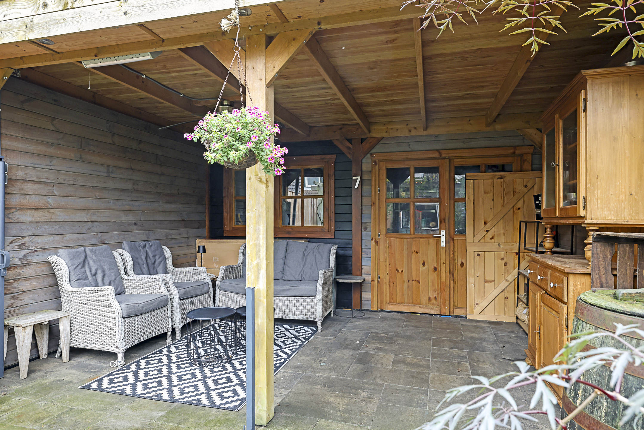 Stijlvolle veranda met o.a. spotverlichting