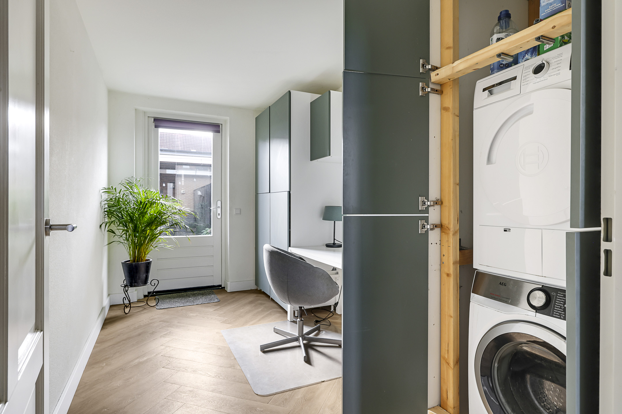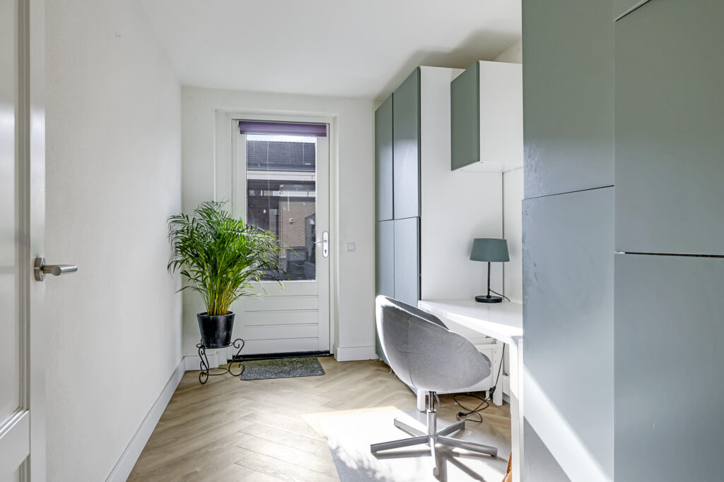 Vanuit de hal/entree heb je toegang tot een werk/hobbyruimte. Mocht je veel thuiswerken of een plekje zoeken waar de kinderen kunnen spelen dan is deze ruimte daarvoor zeer geschikt. Met een tuindeur heb je toegang tot de achtertuin. In deze ruimte zijn tevens de witgoedaansluitingen te vinden.