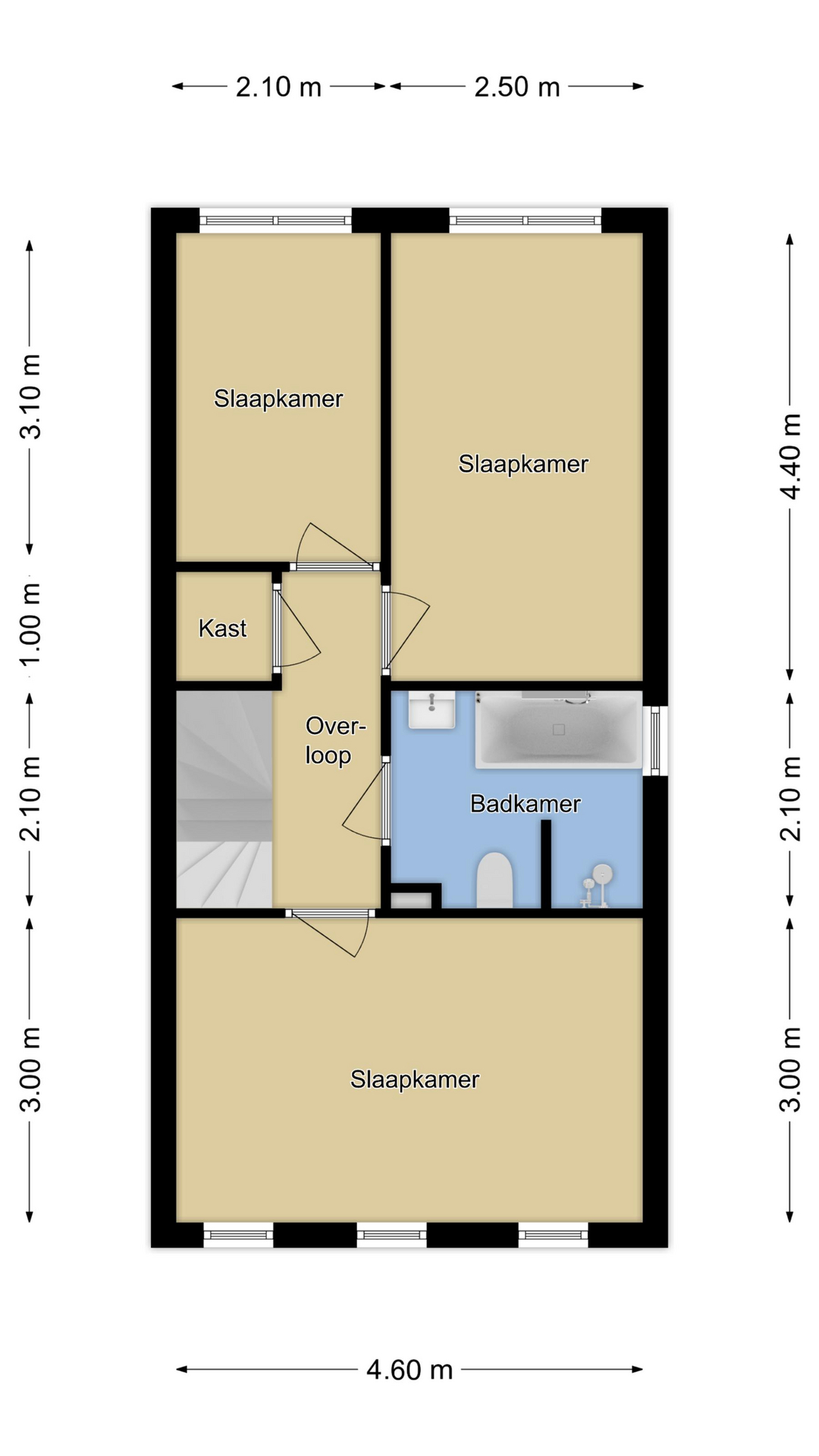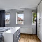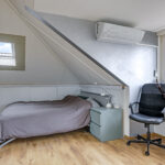 Op deze woonlaag schakelt de overloop 3 slaapkamers en de badkamer aan elkaar. De slaapkamers zijn allen verrassend ruim te noemen en zijn respectievelijk 14m², 11m² en 7m² groot. Een kleine kamer zit er dan ook niet tussen. Door de hoge plafonds en rechte wanden zijn de kamers eenvoudig in te richten en kan je hier bijvoorbeeld grote linnenkasten kwijt voor je garderobe. Mocht je ruimte tekort komen dan is er op de overloop nog een extra kast aanwezig voor de nodige bergruimte. De twee grootste kamer zijn beide voorzien van airconditioning.
