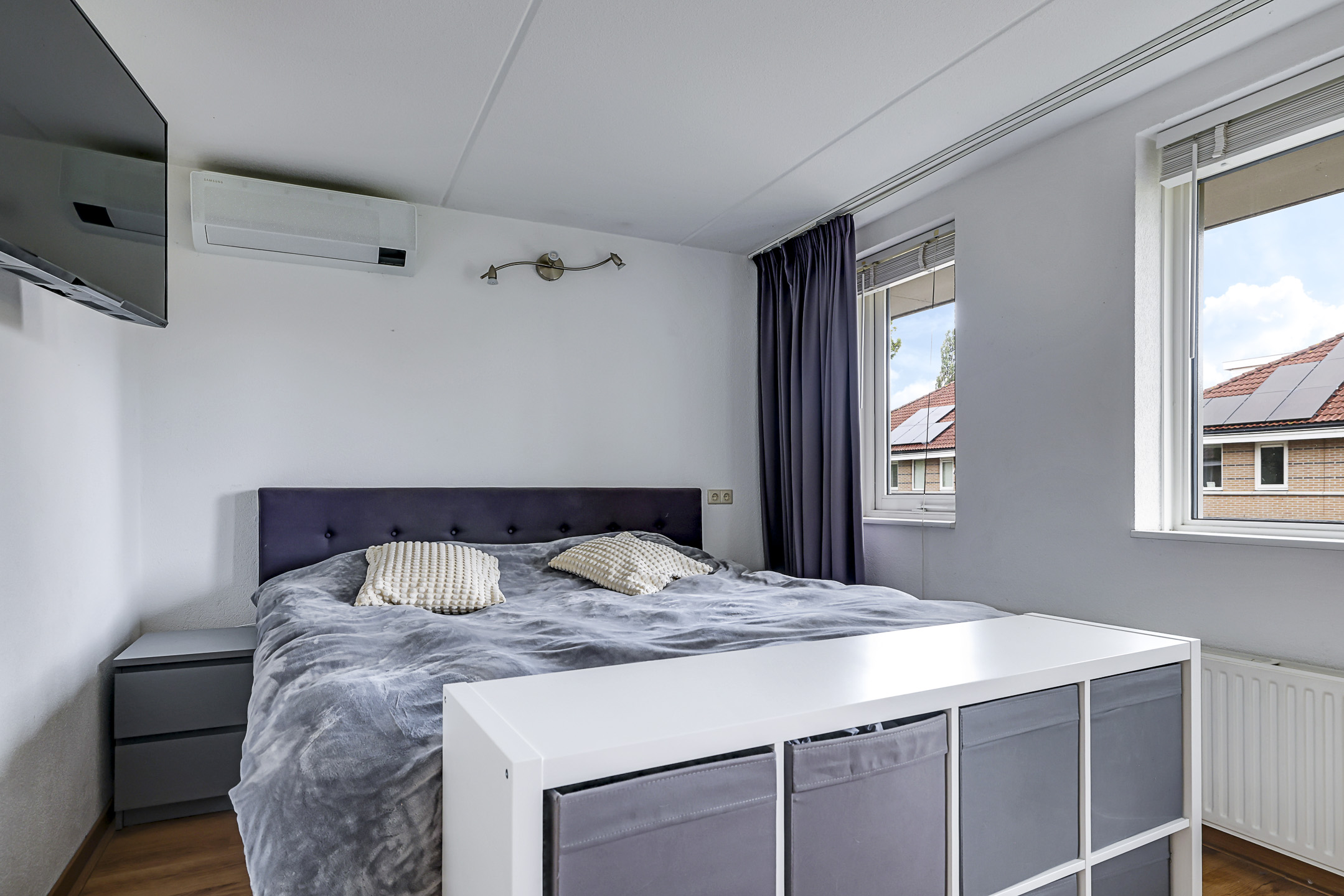 Quote van de makelaar: “Wat een verrassende woning is dit! Met een ruime woonkamer, een ware leefkeuken, een werk/hobbykamer en 4 goed bemeten slaapkamers kom je hier niet snel ruimte tekort. Daarbij is de tuinkamer met glazen schuifwand een kers op de taart. Vloerverwarming, 16 zonnepanelen en 4 airco’s zorgen voor een prettig woonklimaat. Ben jij degene die deze woning je nieuwe thuis gaat noemen?”