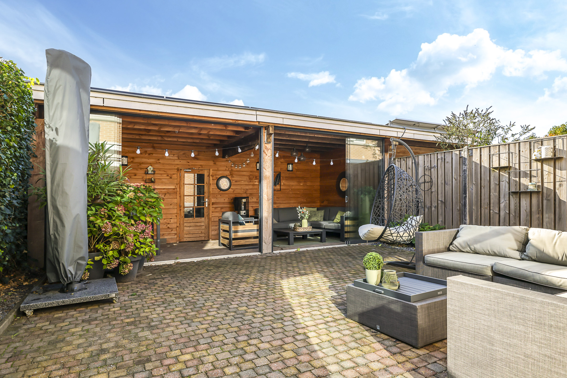 De woning wordt compleet gemaakt door een sfeervolle achtertuin met als grootste pluspunt de riante tuinkamer met glazen schuifwand welke over de volle breedte van de tuin in geplaatst. Hierachter is nog een brede schuur, eveneens over de volle breedte van de tuin te vinden welke is voorzien van een achterom. De woning ligt aan een rustige straat met alle winkelvoorzieningen op loopafstand.