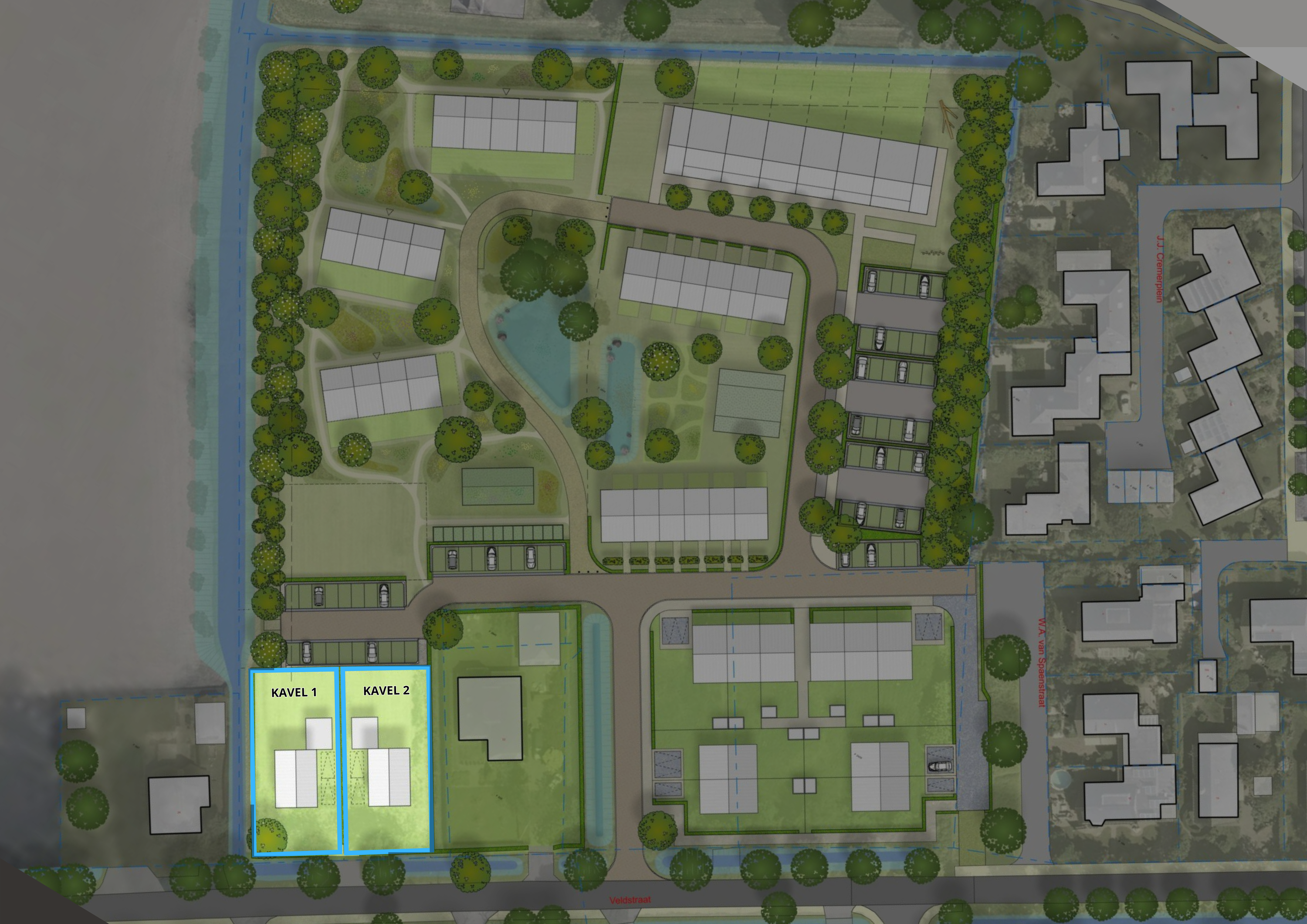 – Vrijstaande woningen (nok haaks op de Veldstraat)