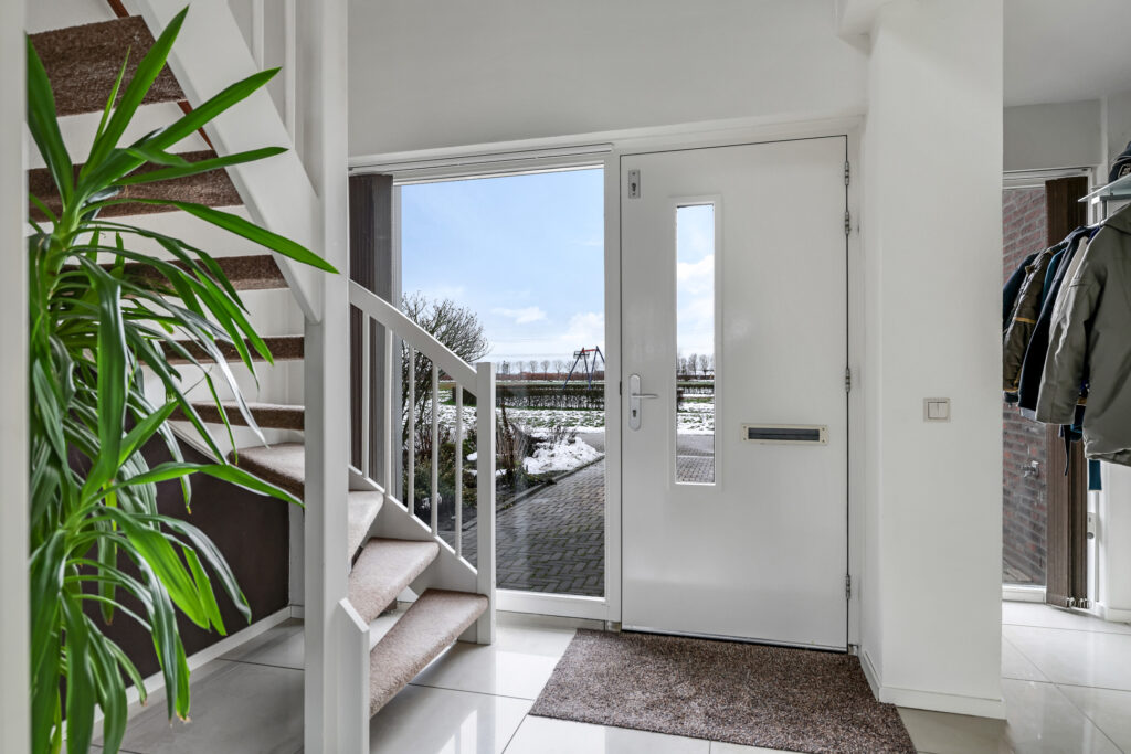 Deze woning wordt compleet gemaakt door een inpandige garage. De garage heeft een elektrische roldeur naar de oprit toe waardoor je eenvoudig met een voertuig of fiets naar binnen kan. Ideaal ook wanneer je bijvoorbeeld een motor hebt. We zien het niet vaak dat een garage van binnenuit ook toegankelijk is. Hier kan dat wel, waardoor je niet buitenom hoeft. Je zult de garage hierdoor ook sneller voor andere doeleinden gaan gebruiken. Je zou zelfs een slaapkamer en badkamer op de begane grond kunnen overwegen. In de hoek van de garage is een vaste kast gemaakt waarachter de warmtepomp verzorgd is weggewerkt.