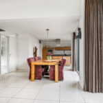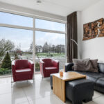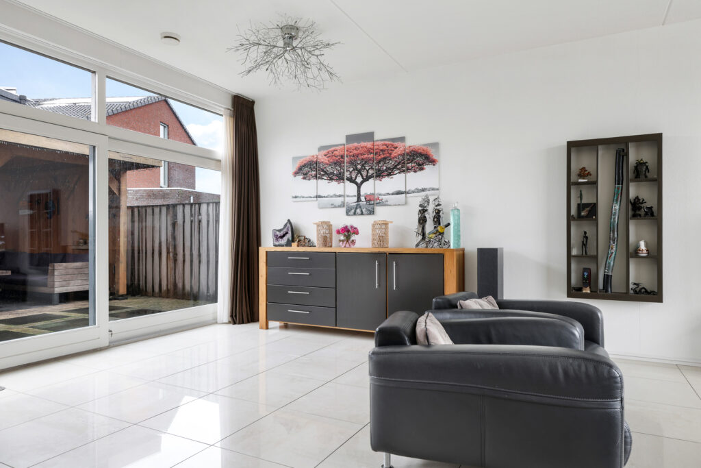 Wanneer je op zoek ben naar een unieke living, ben je bij deze woning zeker aan het juiste adres. De hoogte van het plafond (3 meter hoog) en de maximaal grote raampartijen (van vloer tot plafond) maken de beleving in deze woning uniek! Daarbij kijk je aan de voorzijde uit over veel groen waardoor je een vrij gevoel ervaart. De woonkamer is royaal opgezet waardoor je hier naast een grote bank en een 6-persoons eettafel ook nog ruimte hebt voor een grote kast en een 2e zithoek. Op de vloer liggen groot formaat plavuizen welke aangenaam worden verwarmd door de vloerverwarming. In de zomer laat je de vloerverwarming koelen waardoor het nooit te warm wordt in de woning. Mocht je voorkeur uitgaan naar bijvoorbeeld een visgraat PVC-vloer met houtlook, dan is dat mogelijk. Je laat de vloer egaliseren en de vloer is geschikt voor een PVC-vloer, zonder dat dit ten koste gaat van de capaciteit van de vloerverwarming. Een grote schuifpui geeft in de zomerdag direct toegang tot de achtertuin.