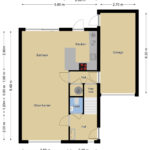 Naast de woning is een stenen garage aangebouwd (2,7m x 6,2m). Deze is op 3 manieren toegankelijk, namelijk via de handige loopdeur in de kanteldeur (voorzijde), van binnenuit en via de achtertuin. We zien het niet vaak dat een garage van binnenuit ook toegankelijk is. Hier kan dat wel, waardoor je niet buitenom hoeft en de garage ook sneller voor meerdere doeleinden gebruikt wordt.