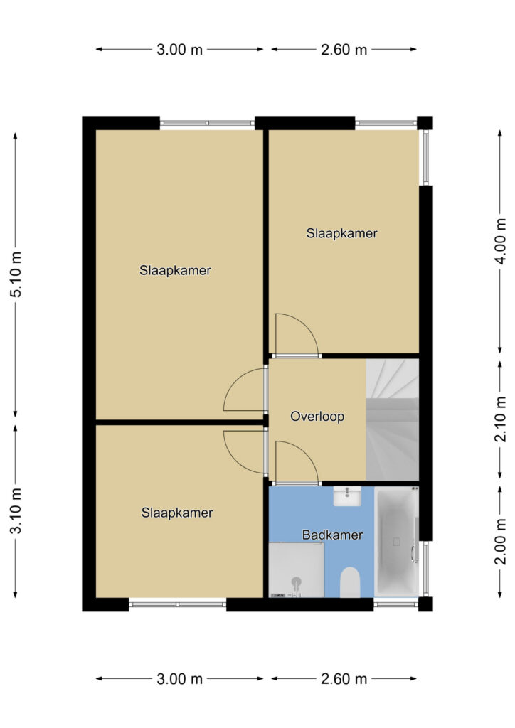 Er zijn 3 volwaardige slaapkamers van respectievelijk 15m2, 11m2 en 9m2. Er zit dus geen kleine kamer tussen, ideaal wanneer je de kamers wilt verdelen met meerdere kinderen. Ook heeft het allemaal rechte muren (gevels) waardoor je de kamers praktisch met o.a. linnenkasten kunt inrichten.