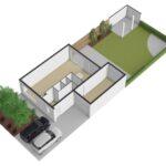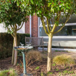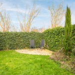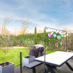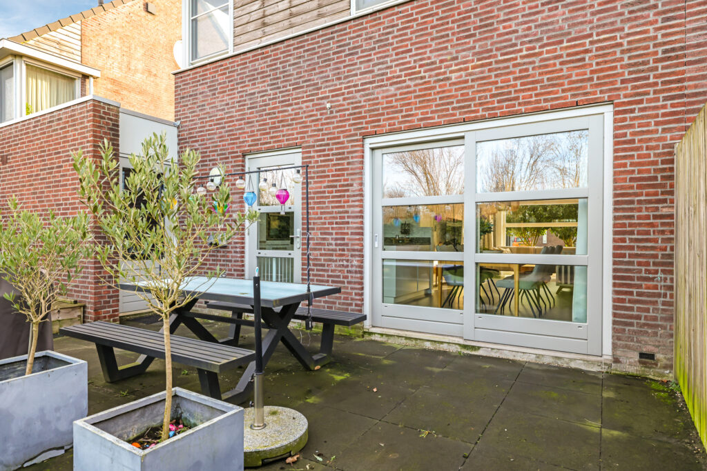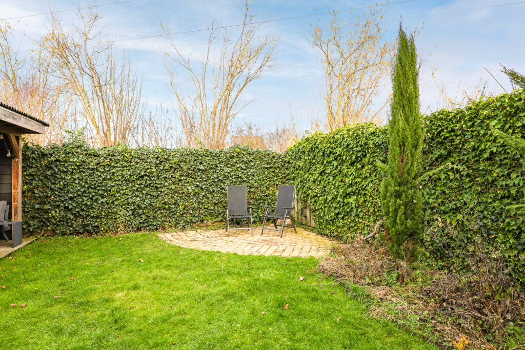 Opvallend is dat de tuin nagenoeg geen inkijk heeft en daardoor veel privacy geniet. De achtertuin grenst namelijk aan een groenstrook met struikgewas, bomen en een wadi waardoor er geen achtergelegen bebouwing is. Zo’n vrije ligging in een woonwijk is bijzonder en is tegenwoordig bij nieuwbouw lastig te vinden.