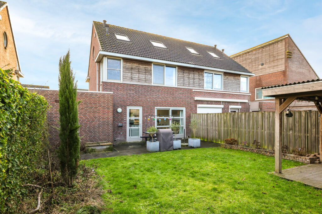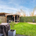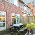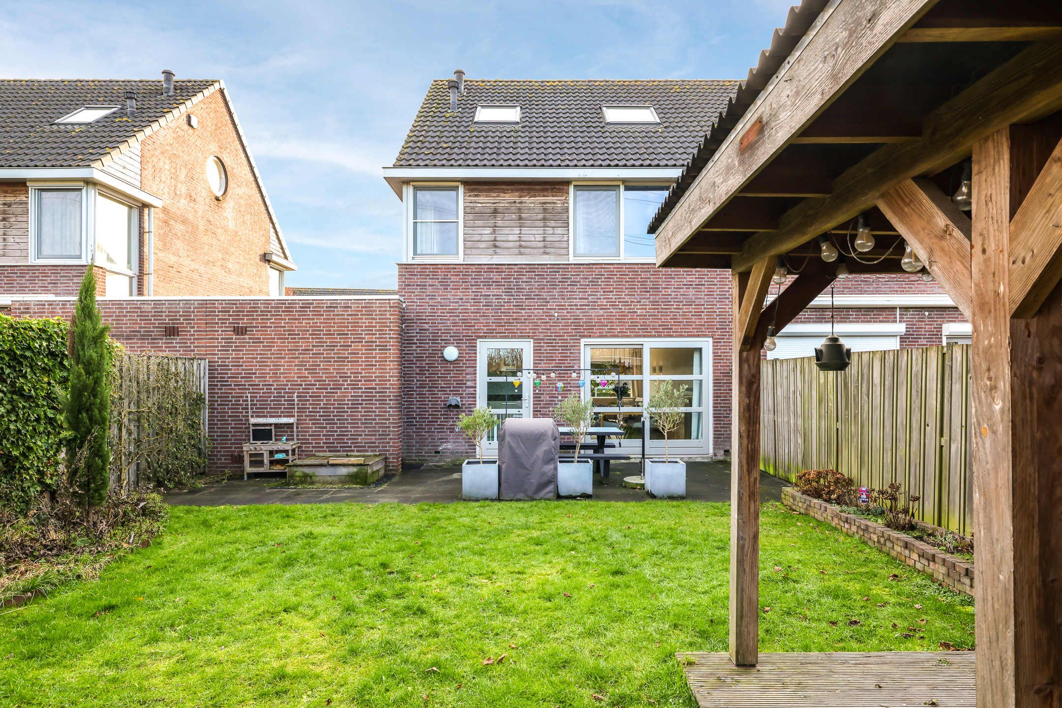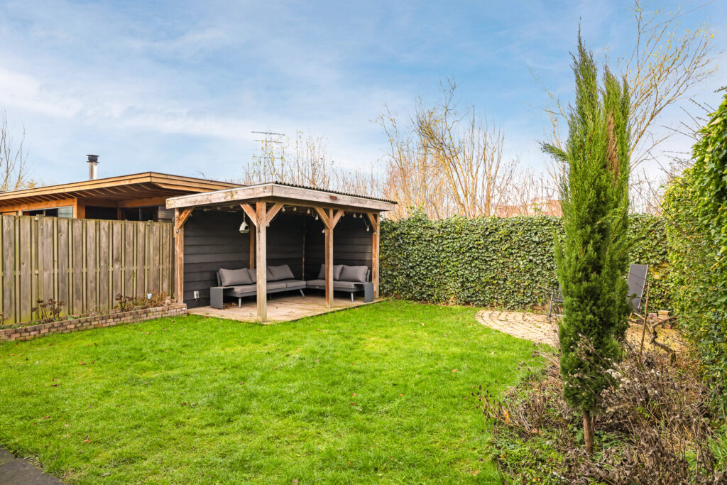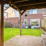 Bij een leuke gezinswoning hoort ook een achtertuin waar je iets mee kunt. Deze achtertuin is ca. 12m diep en 9m breed en heeft daardoor een goede verhouding. Achter in de hoek is een stijlvolle, houten veranda gebouwd (4m x 2,5m) waardoor je op een warme zomerdag heerlijk beschut in de schaduw kunt zitten. De tuin is verder groen aangekleed met gras en een groene erfafscheiding.