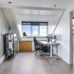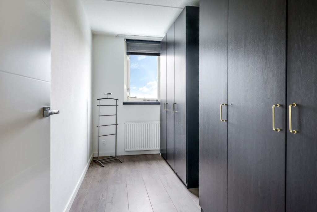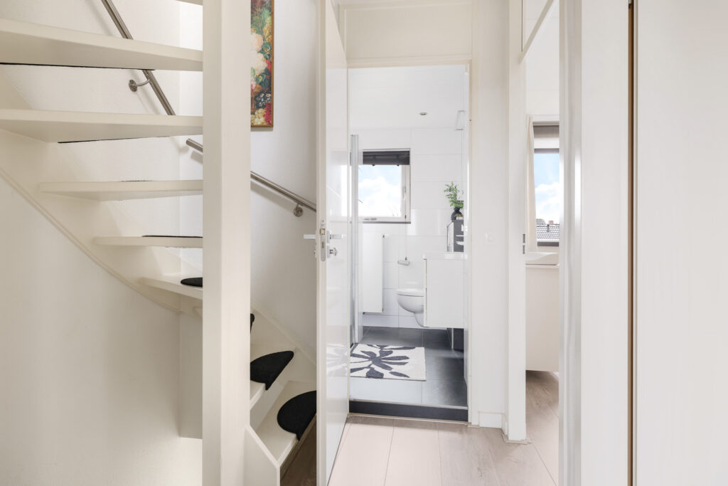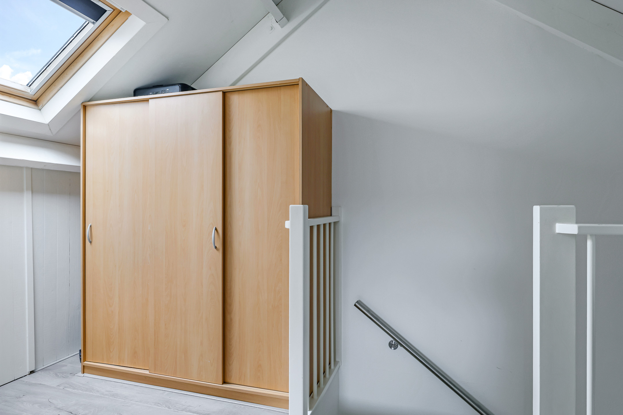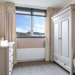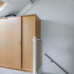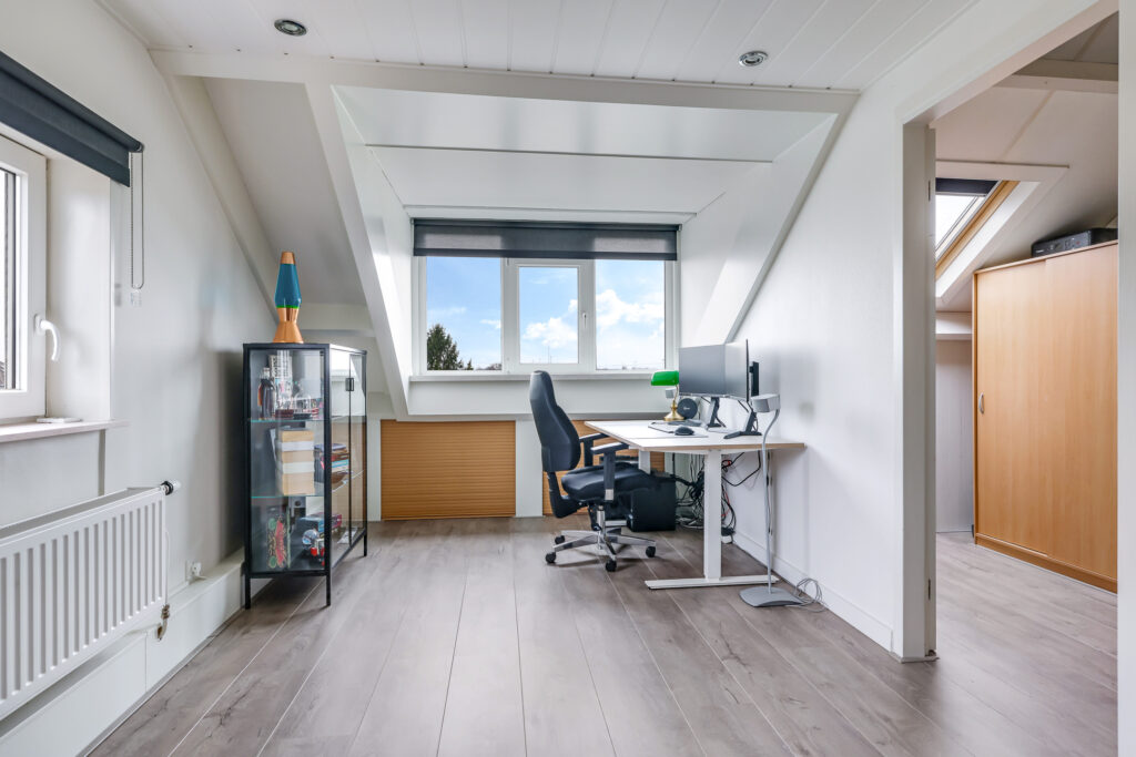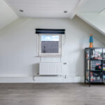 De bovenste woonlaag mag met recht verrassend genoemd worden. Je treft hier een hoge nok waardoor je hier nog verrassend veel extra leefruimte hebt. Deze woonlaag is opgedeeld in een voorzolder en een 4e slaapkamer. Op de slaapkamer is een dakkapel geplaatst waardoor de ruimte nog praktischer en lichter is geworden. De dakkapel is uitgevoerd in kunststof waardoor het onderhoudsvriendelijk is. Achter knieschotten vind je de nodige opbergruimte. Op de voorzolder tref je de witgoedaansluitingen en de opstelling van de cv-ketel (2024) alsmede de omvormer van de zonnepanelen.