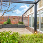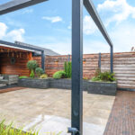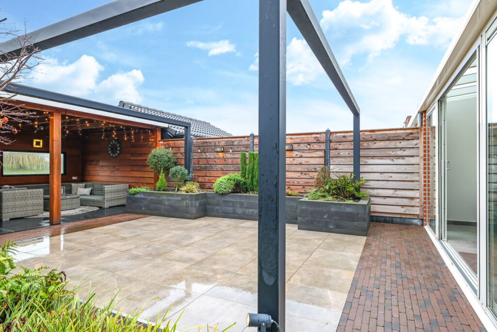 Modern aangelegde tuin met druppelsysteem