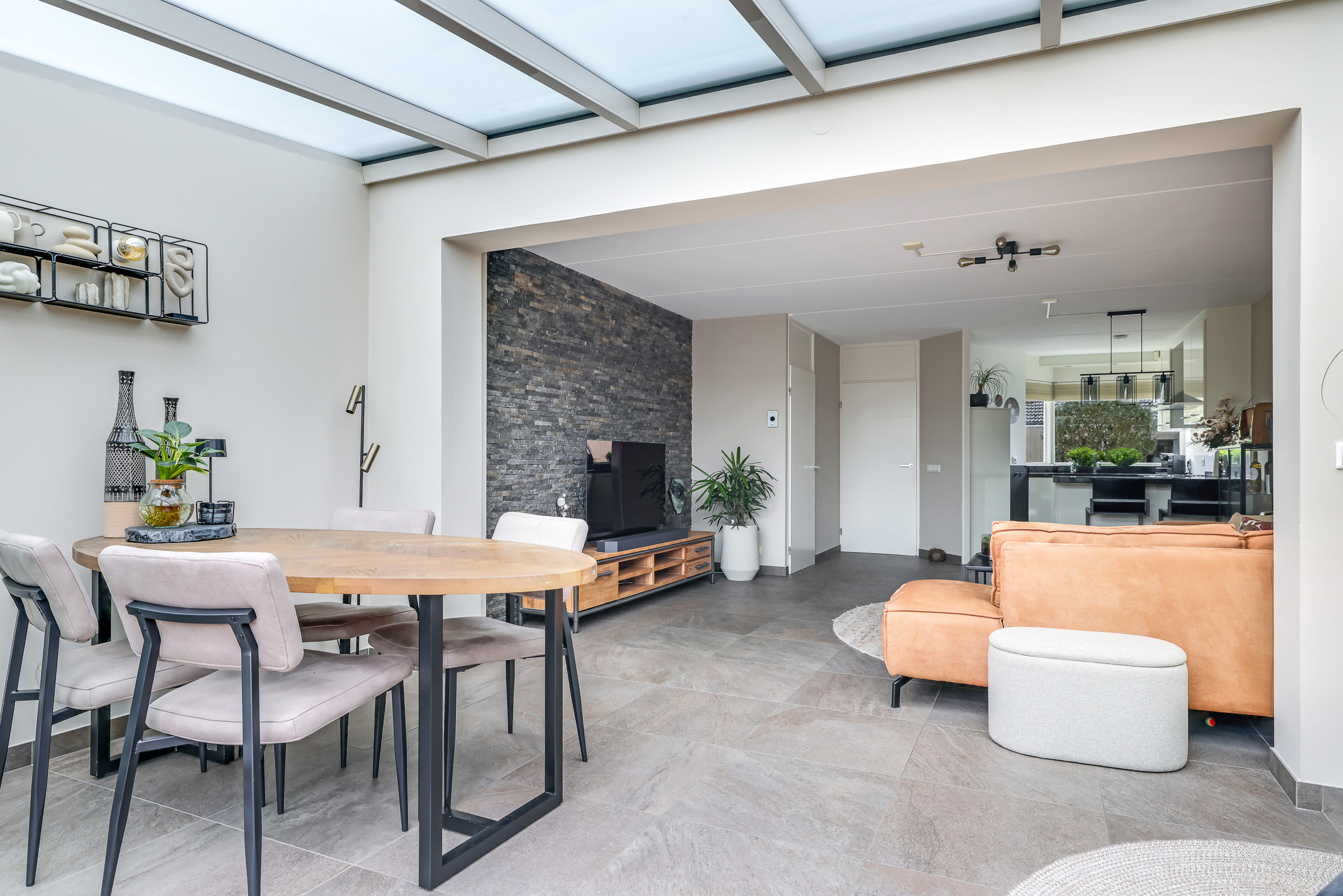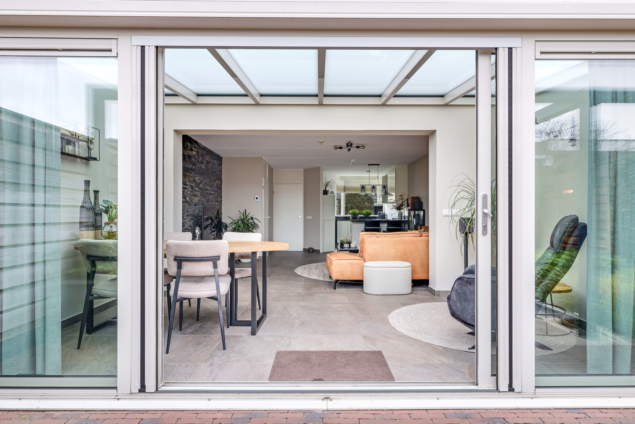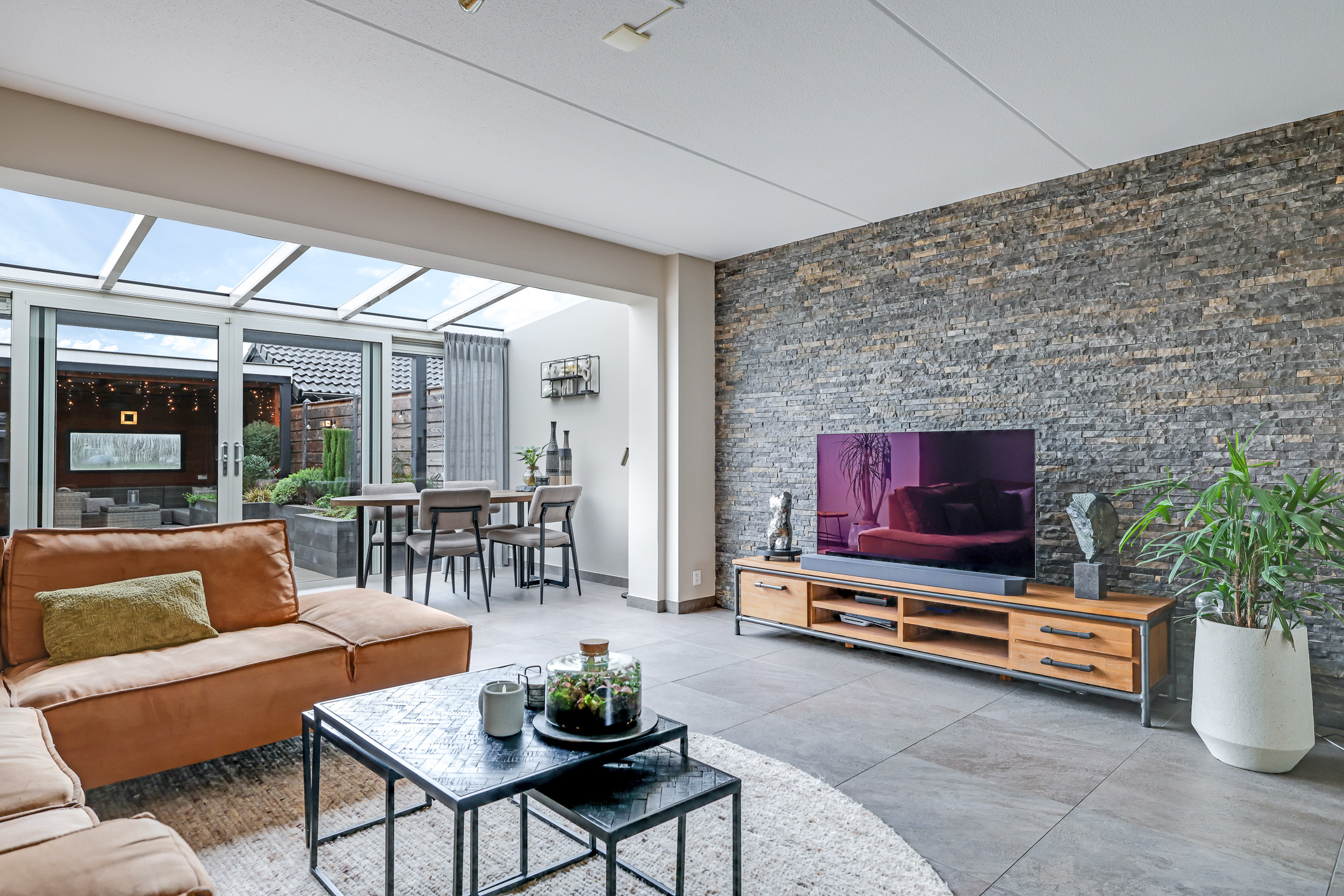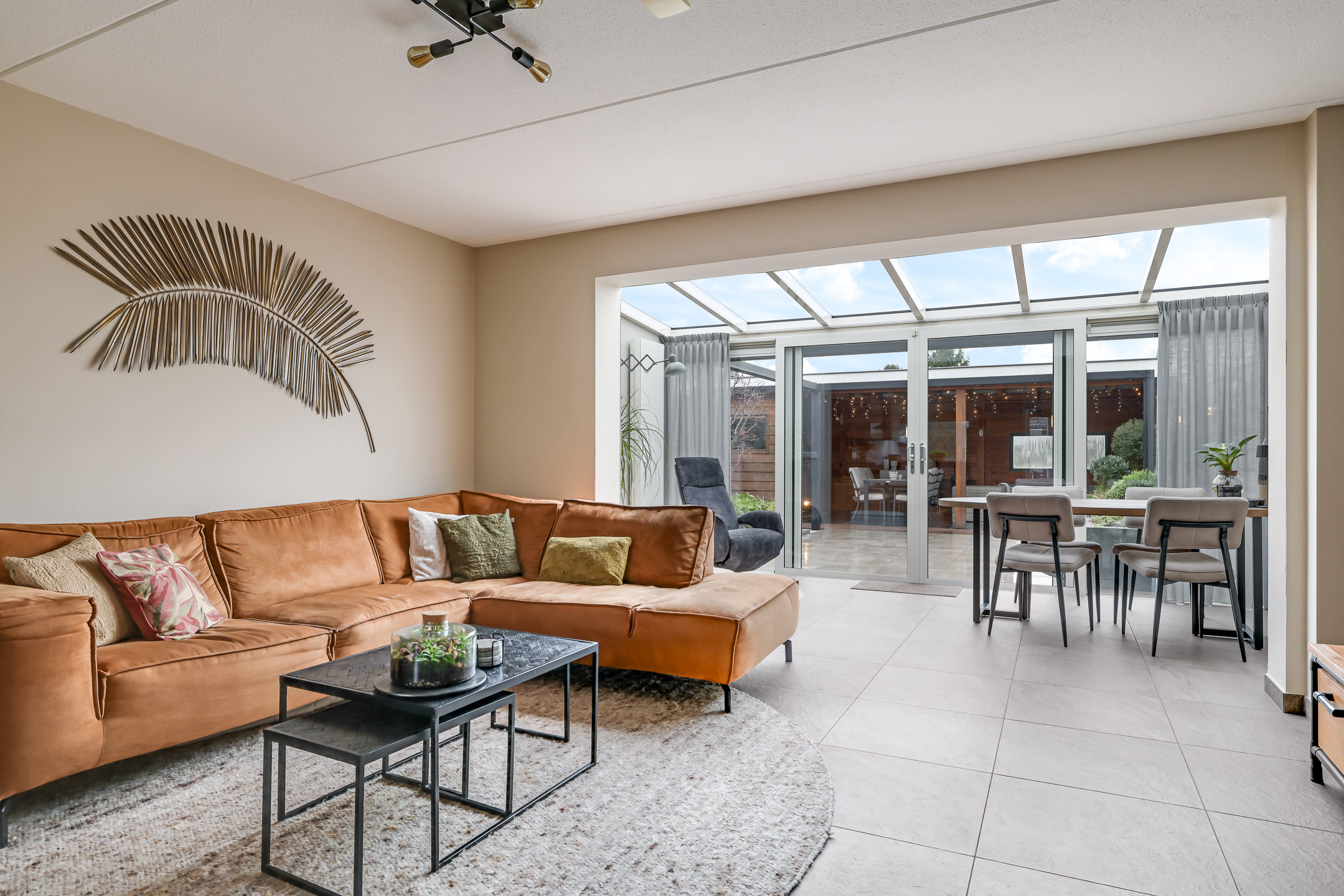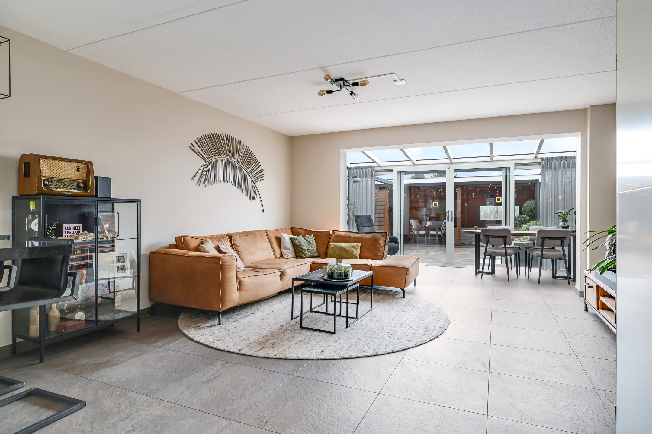 Woonkamer met aangebouwde serre