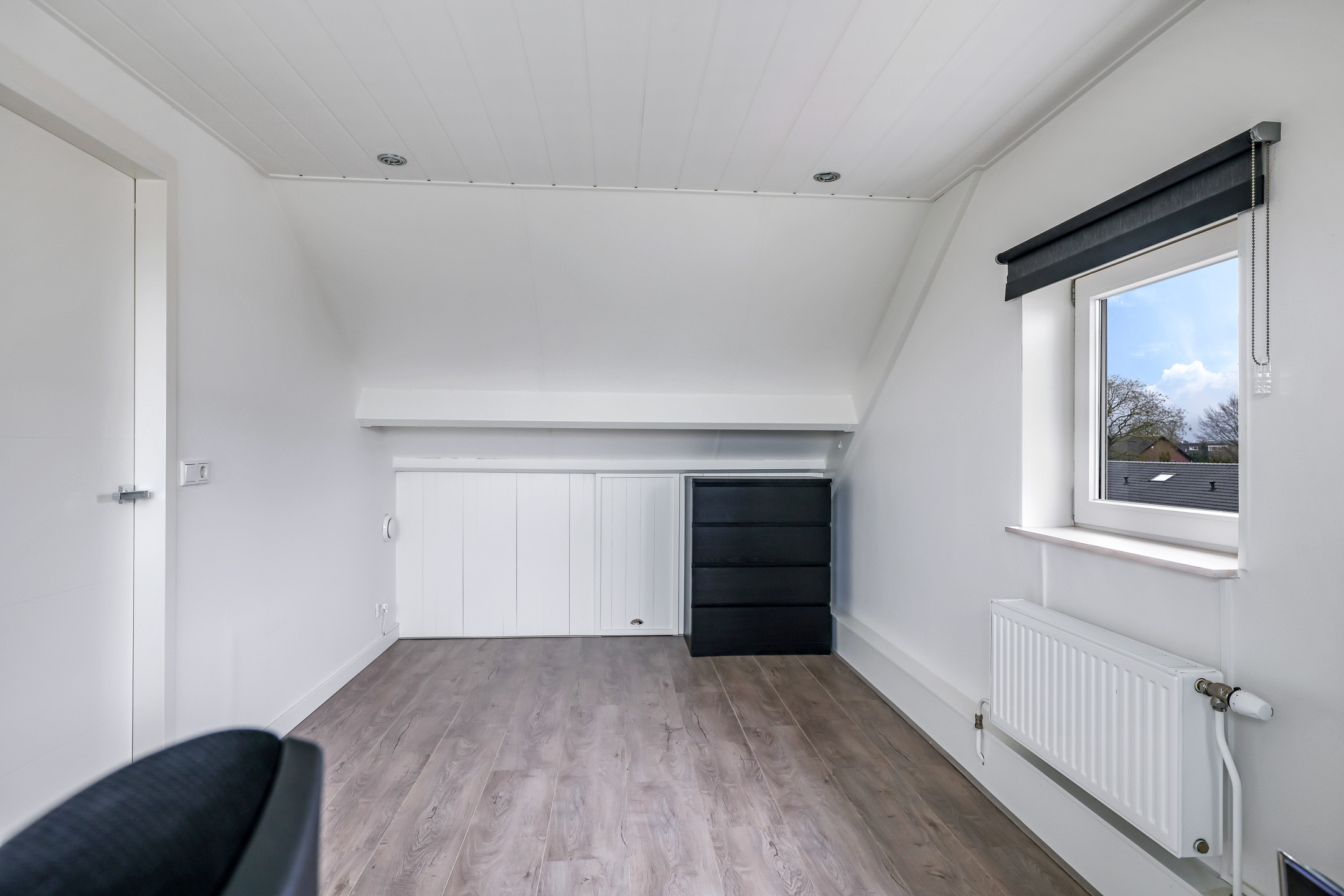 Slaapkamer met dakkapel.