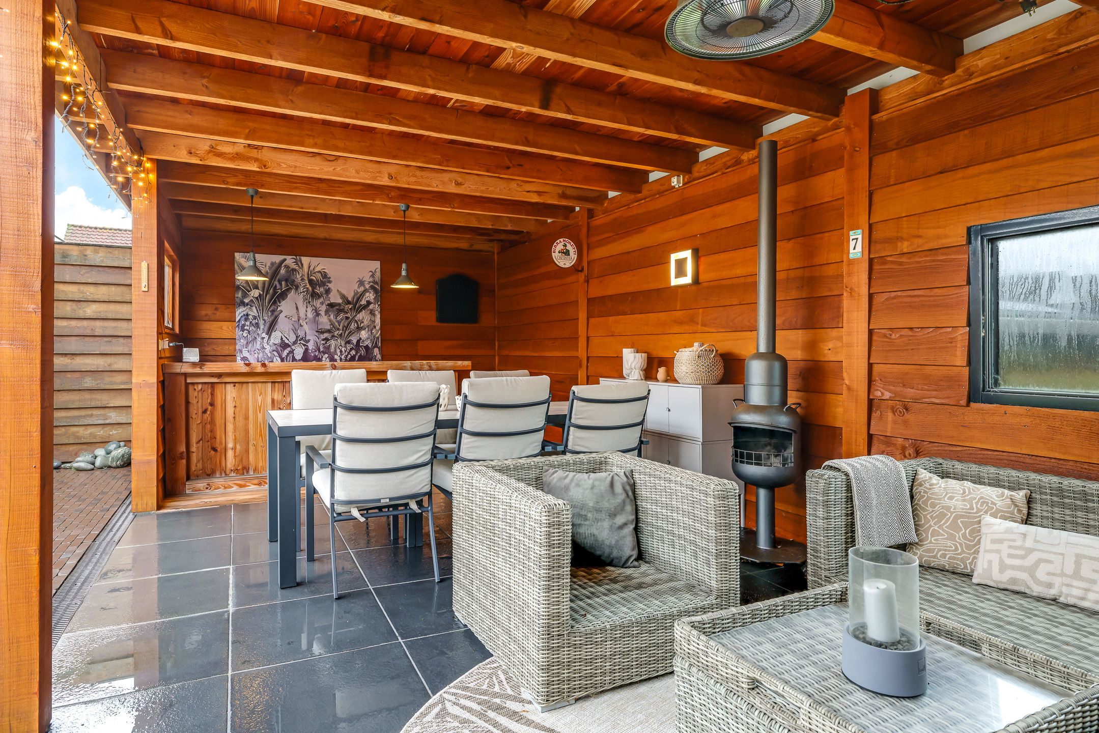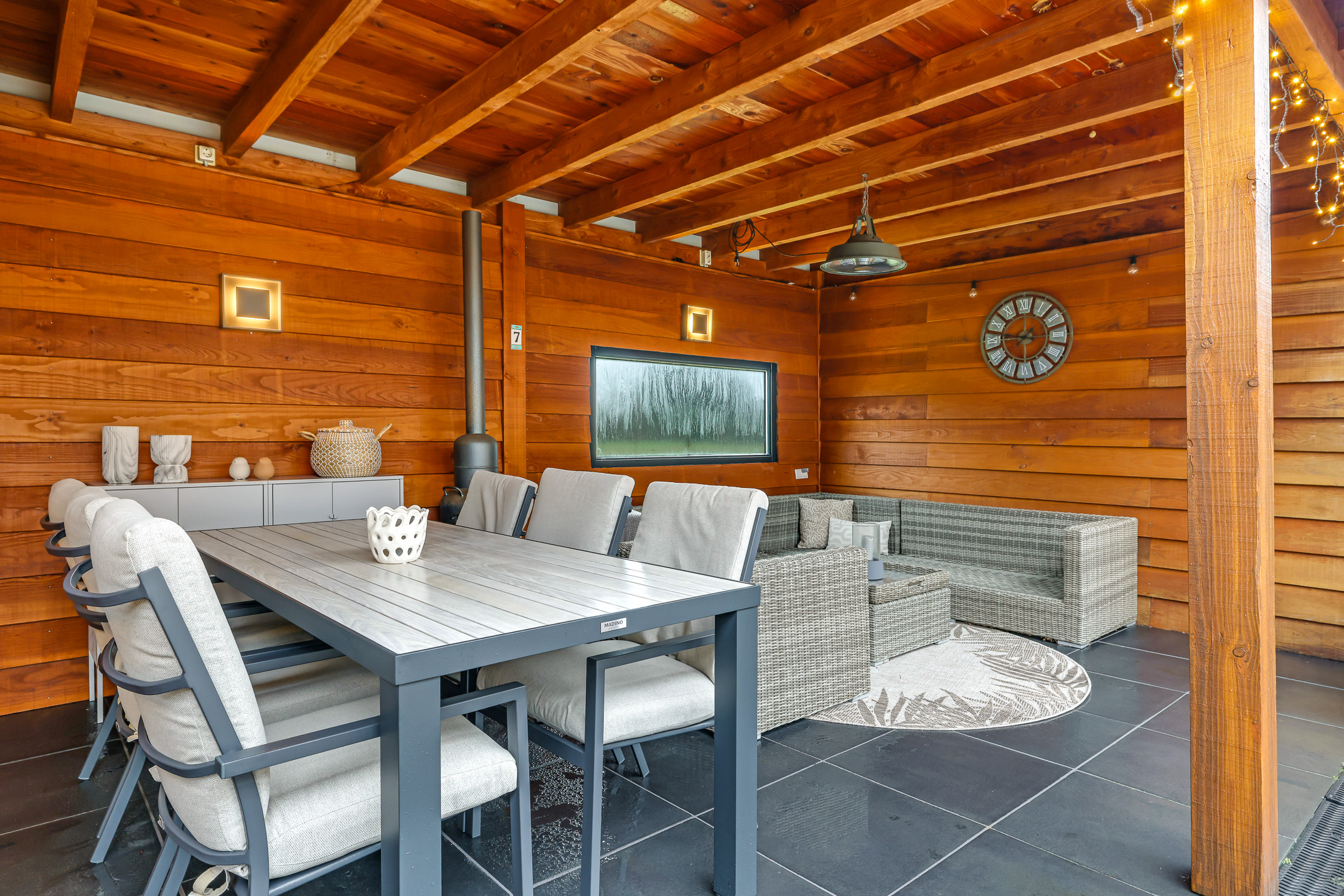 Riante terrasoverkapping met plaats voor meerdere zithoeken