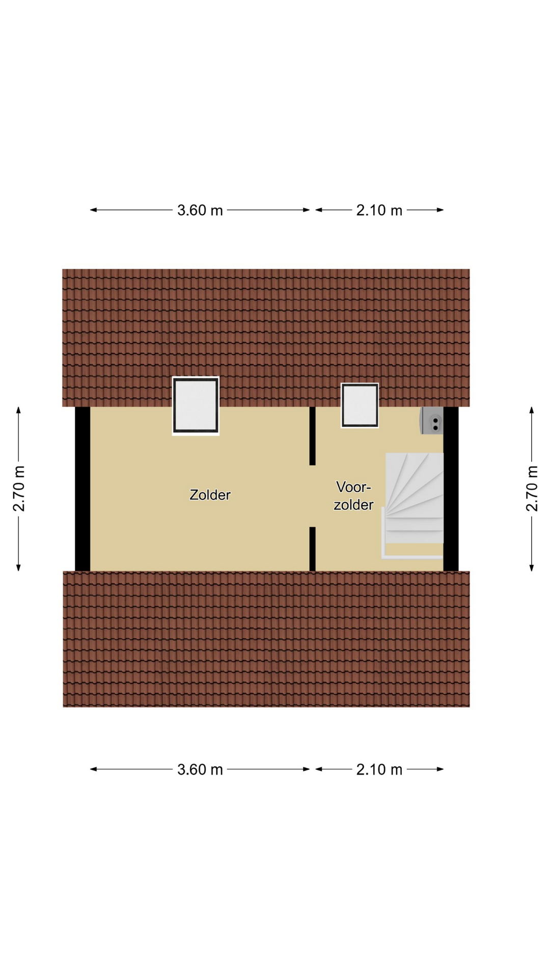 Voorzolder met knieschot opbergruimte, dakvenster en cv-ketelopstelling
