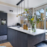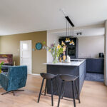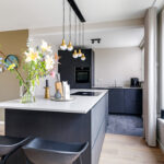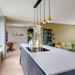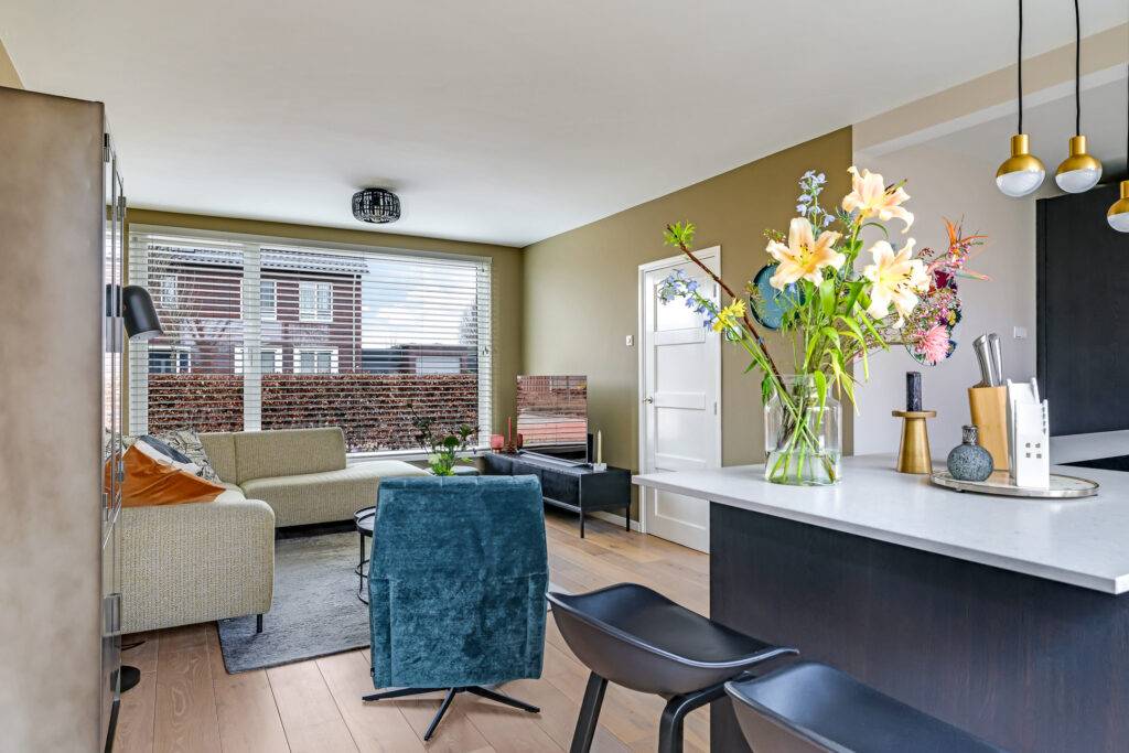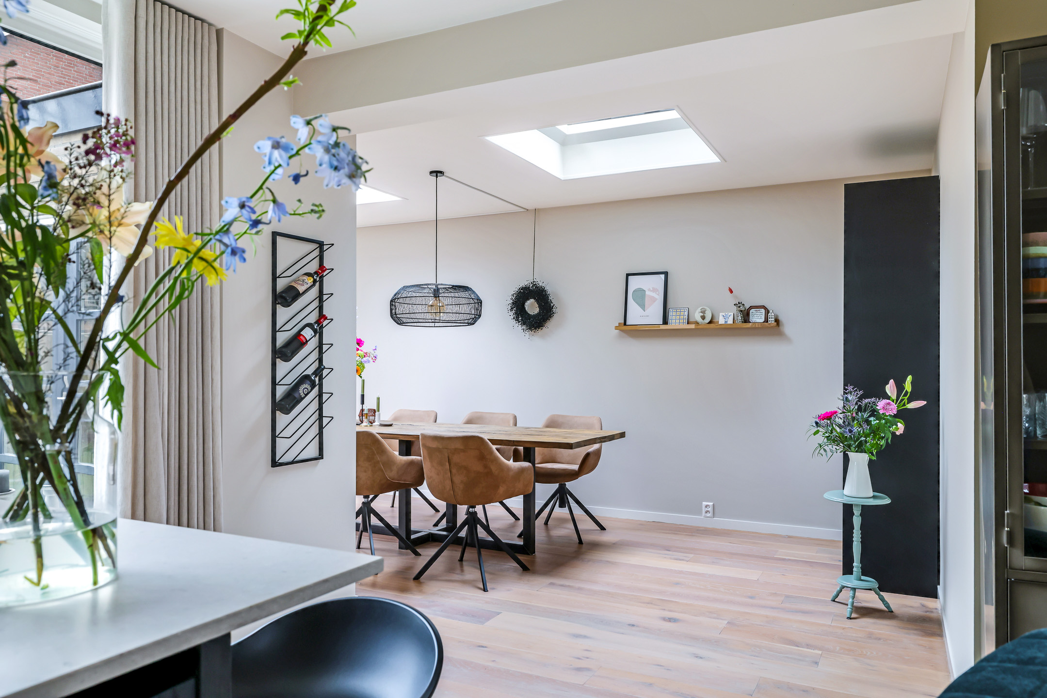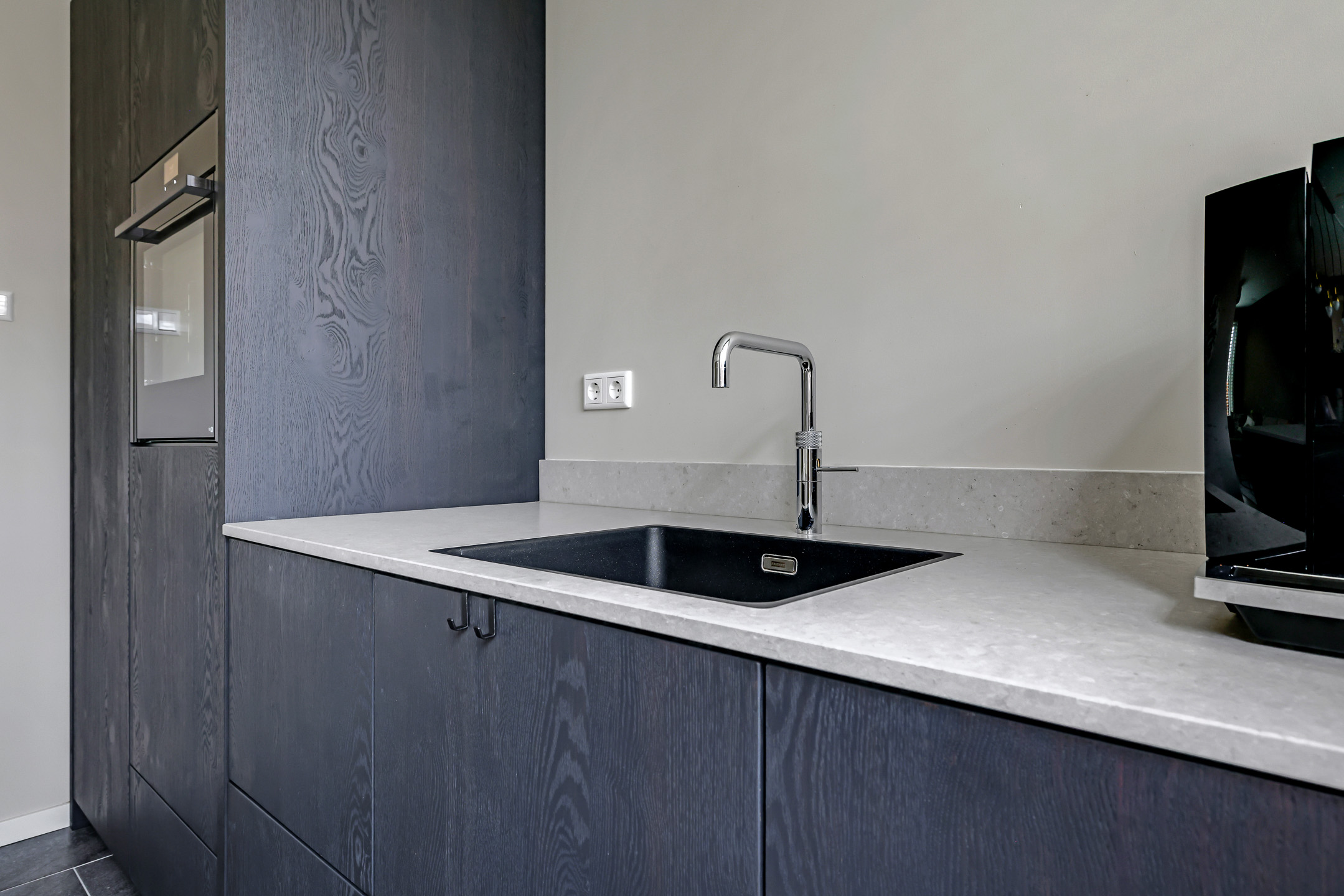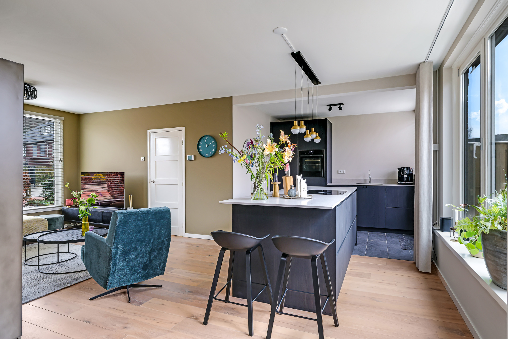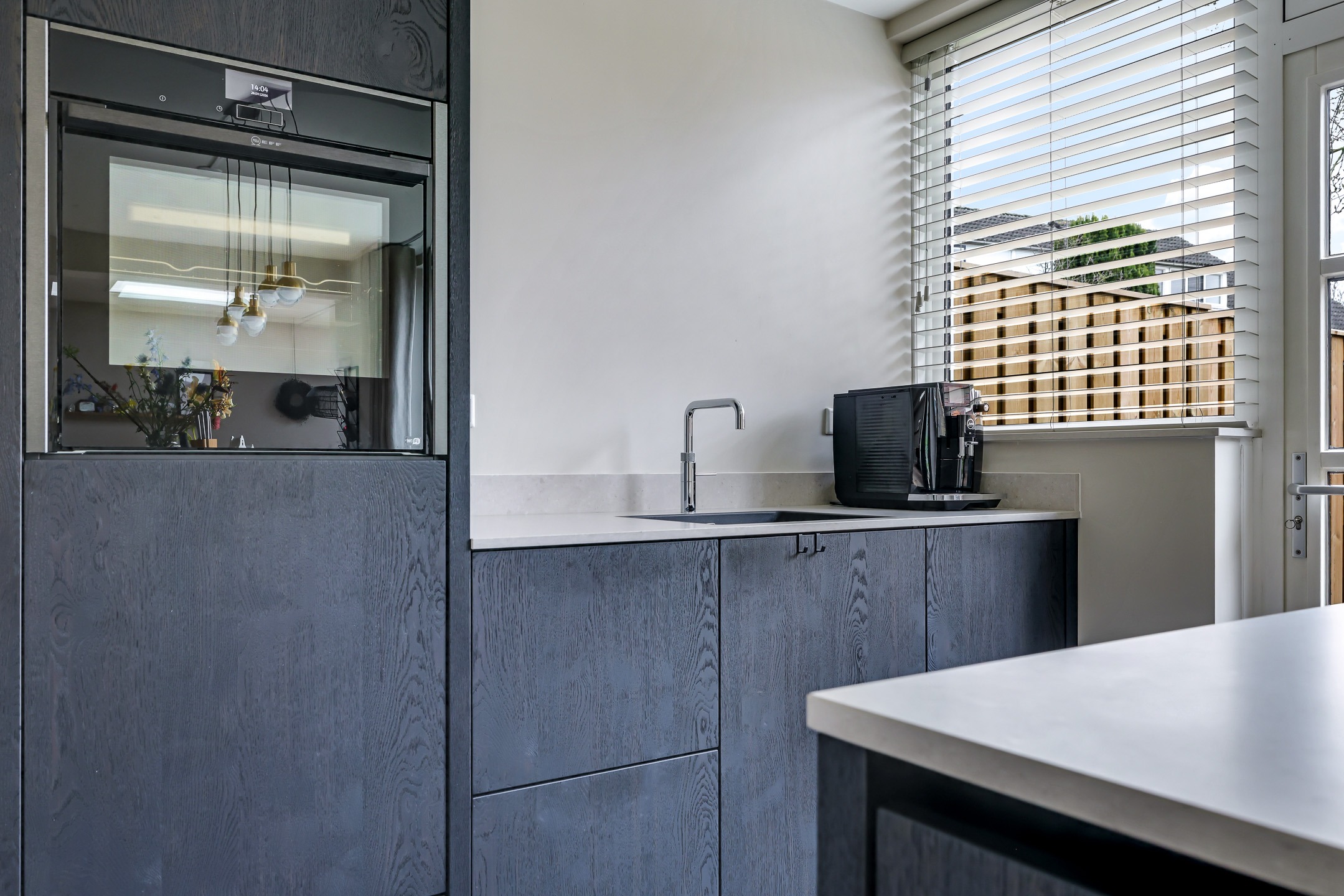 De eyecatcher van deze woning is toch wel de keuken. De van oorsprong dichte keuken is in 2021 opgebroken waardoor er een open leefkeuken is ontstaan. Bij het plaatsen van de keuken is gekozen voor een uitgebreide opstelling met een kookeiland welke centraal in de woning staat. De antraciethouten fronten steken mooi af bij het lichte composiet werkblad. Aan de aanwezige inbouwapparatuur ontbreekt er ook niets, je krijg hier namelijk een 4-pits Bora inductiekookplaat met geïntegreerde afzuiging, een vaatwasser op hoogte, een combi-oven met stoomfunctie en een grote koelkast. Nog een pluspunt is de Quooker waardoor er direct kokend water uit de kraan komt. Het blad van het kookeiland steekt iets uit waardoor je al snel op een barkruk plaats zal nemen. Zie jij je hier al zitten?