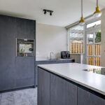 Uitgebreide keukenopstelling met kookeiland Bora kookplaat met geïntegreerde afzuiging, vaatwasser en een stoomoven aanwezig