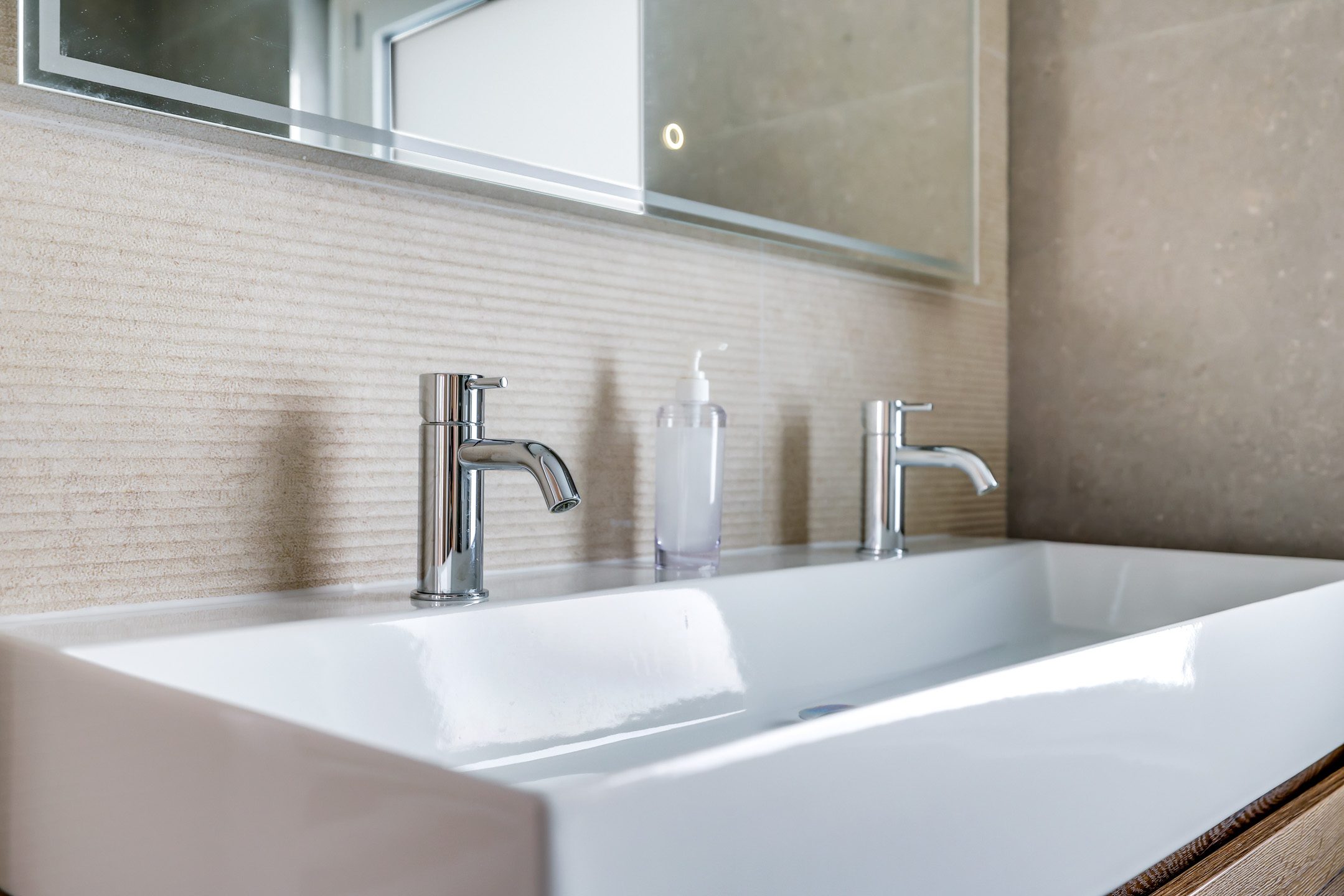 Badkamer met inloopdouche, tweepersoonswastafelmeubel en 2e toilet