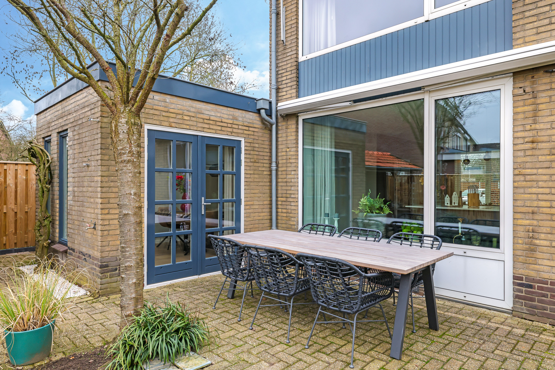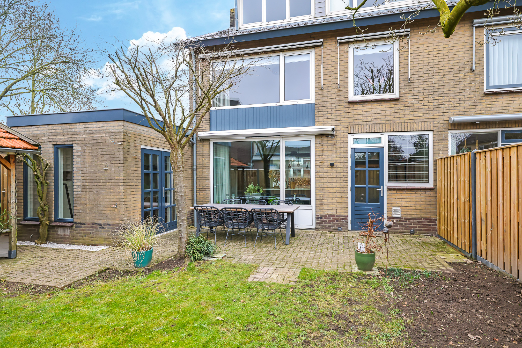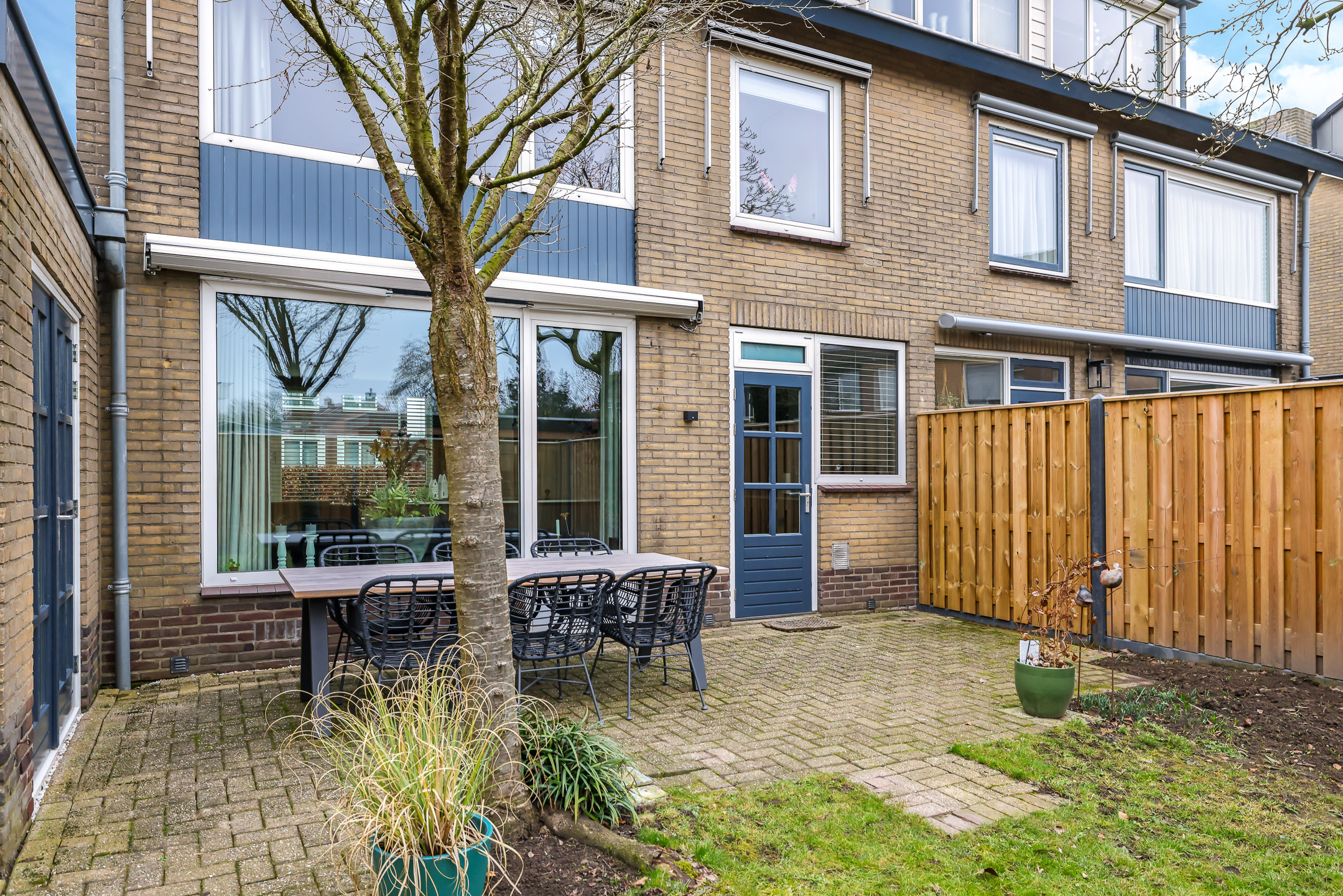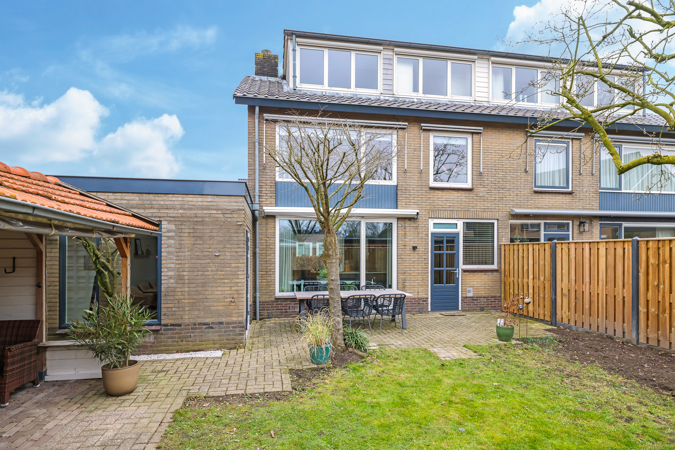 Wat deze gezinswoning compleet maakt is de zonnige achtertuin. Met een ligging op het zuidwesten geniet je hier met name in de middag- en avonduren van veel zonuren. Zonwering op de achtergevel maakt dat je ook schaduw kan creëren. Zit je liever beschut, dan neem je plaats onder de sfeervolle pangedekte veranda. De tuin is opgedeeld in een groot terras en gras waar je eventueel nog een speeltoestel kan plaatsen. Diverse bomen zorgen daarbij voor een groene sfeer. In 2025 is de schutting vervangen voor een solide exemplaar met betonpalen. Dit zorgt ervoor dat de erfafscheiding er weer verzorgd uitziet. De poort is tegelijkertijd vervangen. Erg prettig dat je langs de woning achterom kan lopen. Zo hoef je met bijvoorbeeld je snoeiafval niet door de woning heen. Ook is in 2025 de voortuin vernieuwd waardoor ook deze er weer verzorgd bij ligt.