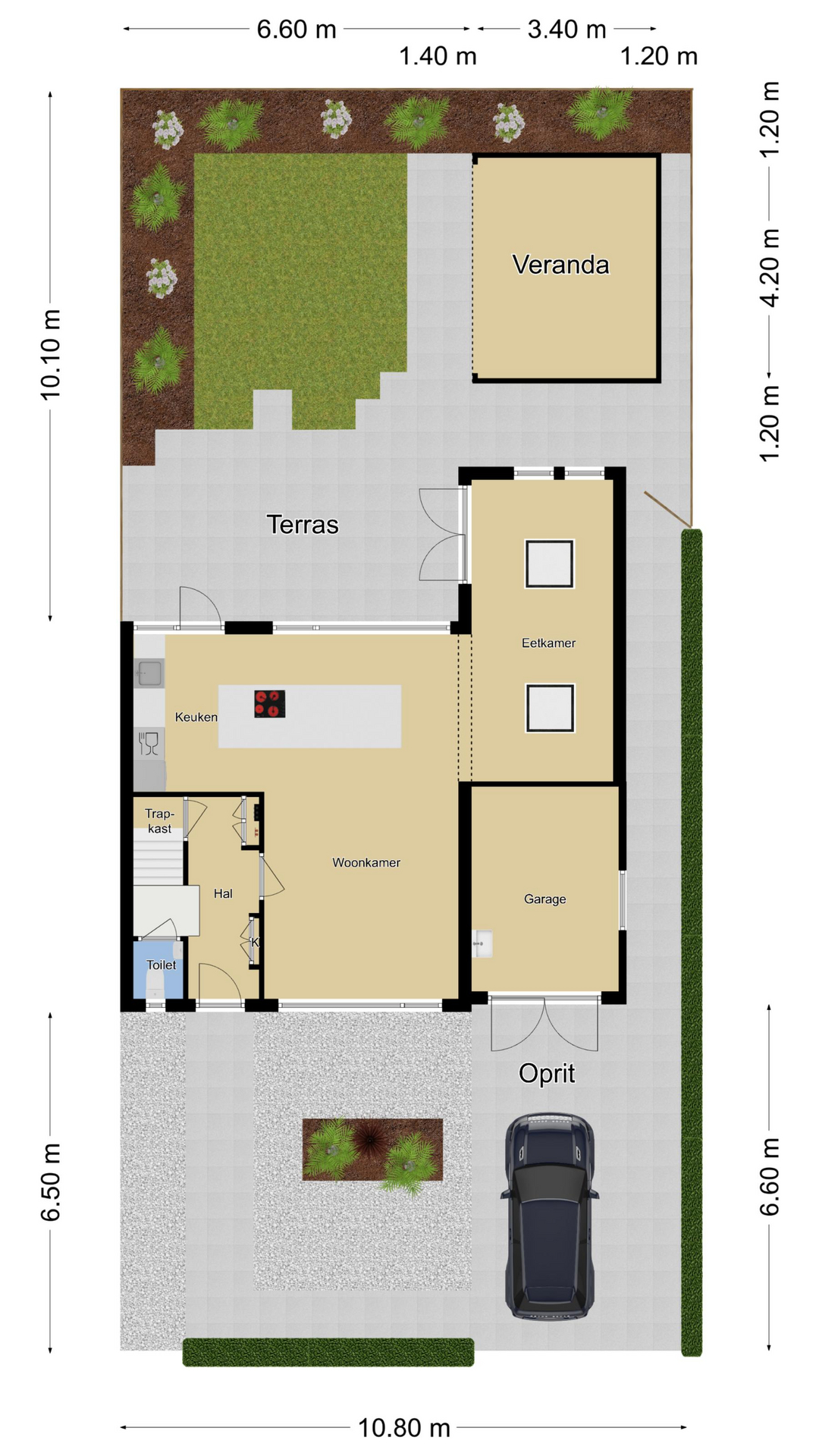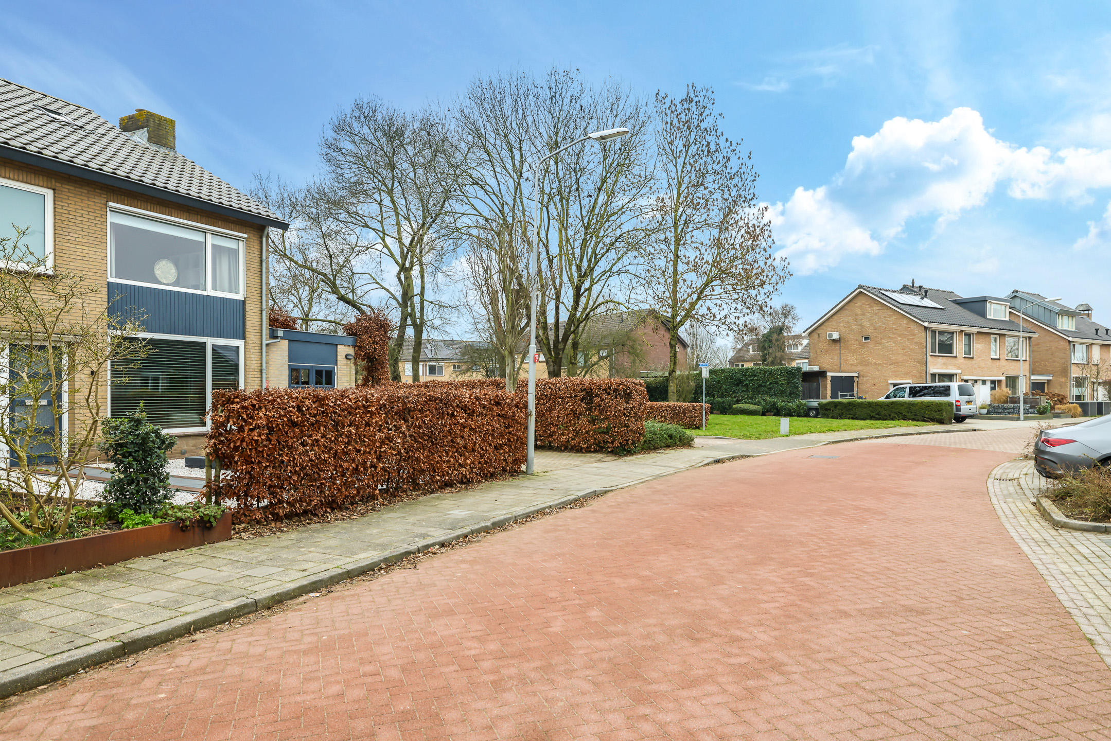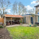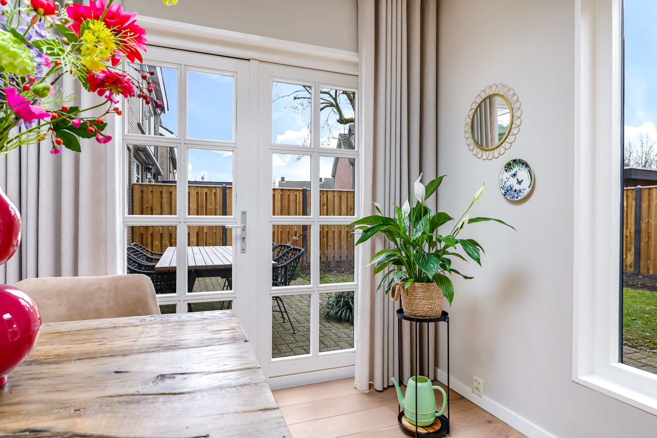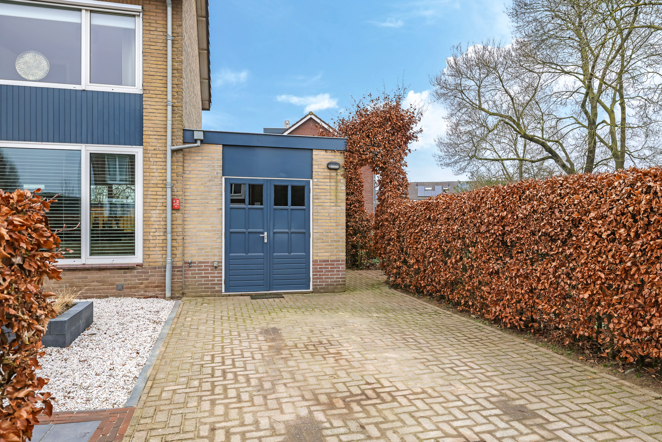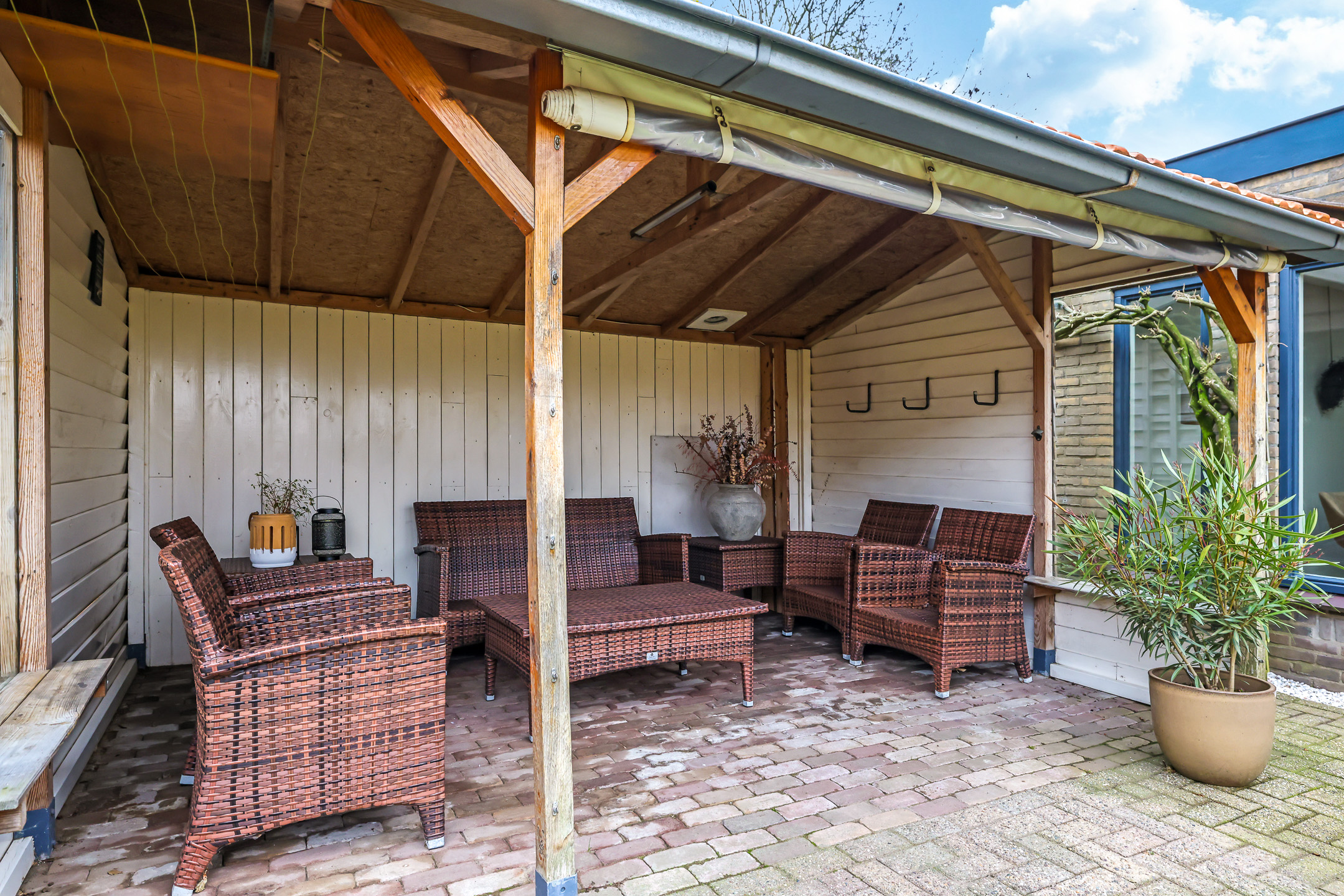 Wat deze gezinswoning compleet maakt is de zonnige achtertuin. Met een ligging op het zuidwesten geniet je hier met name in de middag- en avonduren van veel zonuren. Zonwering op de achtergevel maakt dat je ook schaduw kan creëren. Zit je liever beschut, dan neem je plaats onder de sfeervolle pangedekte veranda. De tuin is opgedeeld in een groot terras en gras waar je eventueel nog een speeltoestel kan plaatsen. Diverse bomen zorgen daarbij voor een groene sfeer. In 2025 is de schutting vervangen voor een solide exemplaar met betonpalen. Dit zorgt ervoor dat de erfafscheiding er weer verzorgd uitziet. De poort is tegelijkertijd vervangen. Erg prettig dat je langs de woning achterom kan lopen. Zo hoef je met bijvoorbeeld je snoeiafval niet door de woning heen. Ook is in 2025 de voortuin vernieuwd waardoor ook deze er weer verzorgd bij ligt.