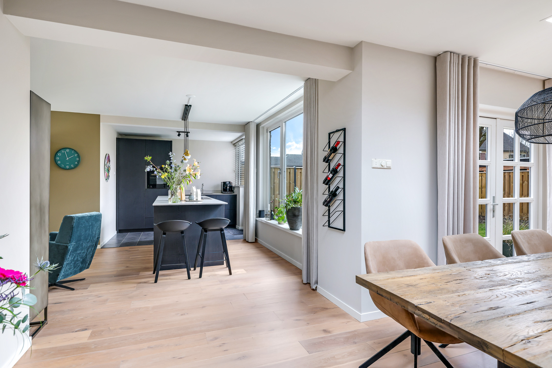 Quote van de makelaar: “Deze verrassende gezinswoning is zeker niet meer standaard te noemen. Met een uitbouw aan de achterzijde en een dakkapel met nokverhoging is deze woning veel ruimer geworden. Daarbij krijg je een luxe keuken en een moderne badkamer (beide 2021), vloerverwarming en muurverwarming (beide warm water), een tuin op het zuidwesten met een veranda en gedeeltelijk aluminium (onderhoudsvriendelijk) kozijnen met triple glas. De rustige ligging met onder meer een groenstrook naast het huis is toch erg centraal met het dorpsplein, supermarkt en basisscholen letterlijk op loopafstand. Dit maakt deze woning wel heel erg interessant voor een grote doelgroep.”