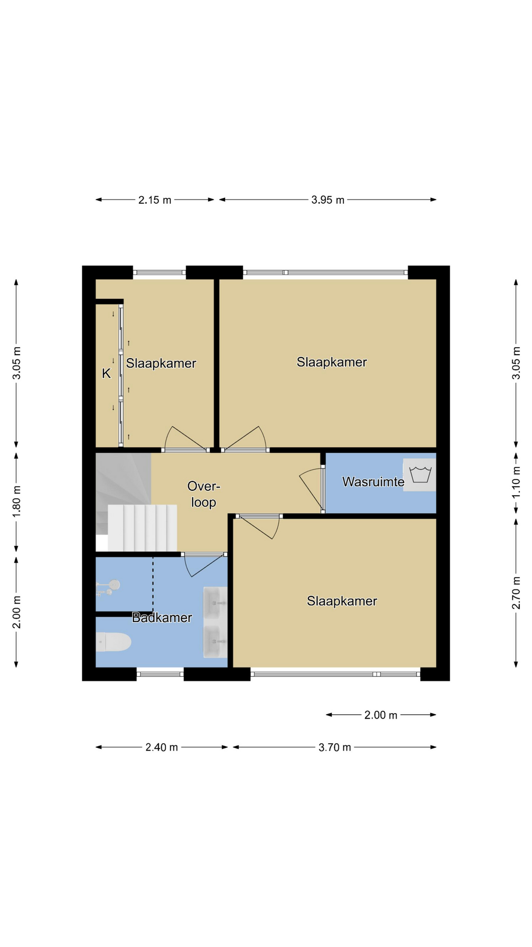 3 Slaapkamers waarvan 1 met vaste kastenwand (walk-in-closet)
