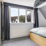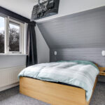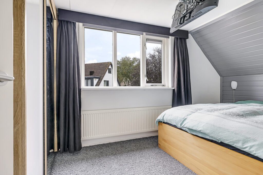 Wanneer je in de hal staat, zal je één ding zeker opvallen: de traprenovatie met verlichting. Deze stijlvolle trapopgang brengt je naar de 1e verdieping waarbij de overloop 3 slaapkamers en de badkamer aan elkaar schakelt. De hoofdslaapkamer heeft de volle breedte van de woning en is aan de achterzijde gelegen. Omdat dit ook de zonnige kant is, is hier een elektrisch bedienbaar rolluik geplaatst. Hierdoor kun je deze kamer 100% verduisteren. Aan de voorzijde vinden we de 2 andere slaapkamers terug waarvan er één een kleine dakkapel heeft. Overigens is er nauwelijks ruimteverlies door schuine dakvlakken, omdat de gevels vrij hoog doorlopen. En mocht je ‘out-of-the-box’ willen denken dan zou je in één van de slaapkamers een ‘slaapvide’ kunnen maken. Je maakt de slaapkamer dan groter door een slaapgedeelte op de 2e verdieping te maken.