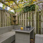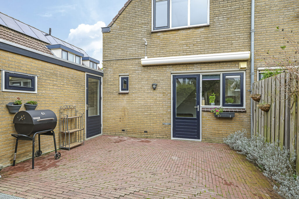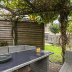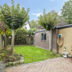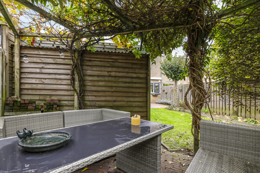 Ben je een tuinliefhebber, dan zal je deze tuin zeker aanspreken. De relatief diepe tuin heeft een groen en intiem karakter waarbij diverse boomsoorten en het uitgestrekte grasgazon voor een serene rust zorgen. Achterin de tuin biedt een terras met pergola een 2e terras. Bovendien ligt de woning relatief vrij en is er nauwelijks inkijk. En om het (voor veel mensen) nog aantrekkelijker te maken: deze tuin ligt op het zonnige zuid/westen waarbij je de gehele dag, van ’s morgens vroeg tot ’s avonds laat van de zon kunt genieten. In de tuin zijn diverse elektrapunten aangelegd alsmede een watertappunt. Ook is de afwatering bij het zitterras goed geregeld doordat er een drain is aangebracht.