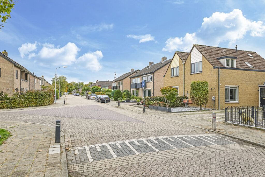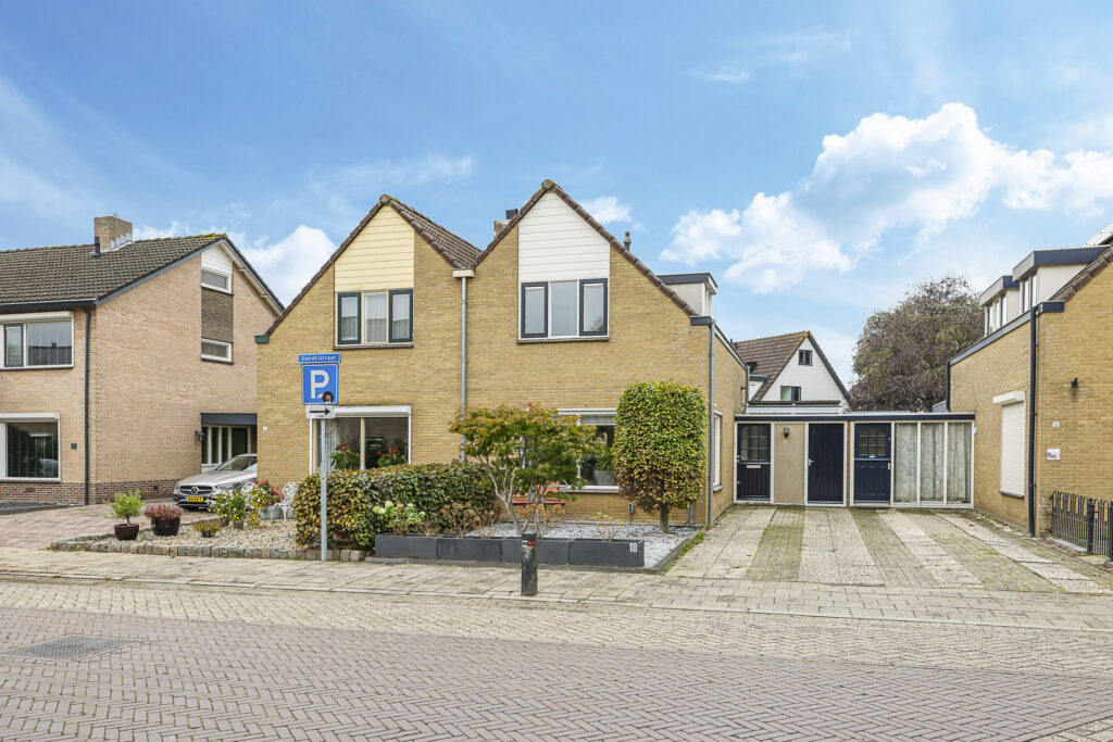 Gelegen op een aantrekkelijk perceel grond van 222m2 groot, is de woning gebouwd met een eigen zadeldak waardoor het half-vrijstaand aandoet. De woning heeft geen doorsnee uitstraling en dat speelse karakter vinden we ook terug in de woning. De woning is geschakeld met de garage van de naastgelegen buurwoning. Ook deze woning had voorheen een eigen garage, maar die is omgebouwd tot berging en bijkeuken/wasruimte. Tegenwoordig gebeurt het nog maar zelden dat een auto in de garage wordt geparkeerd. Wellicht dat de diepe oprit met plaats voor 2 auto’s ook al voldoende is. Doordat de garage is omgebouwd, is er meer leefruimte ontstaan en de bijkeuken zal je ook zeker als erg praktisch ervaren. Daarentegen kun je nog steeds fietsen in de berging kwijt.