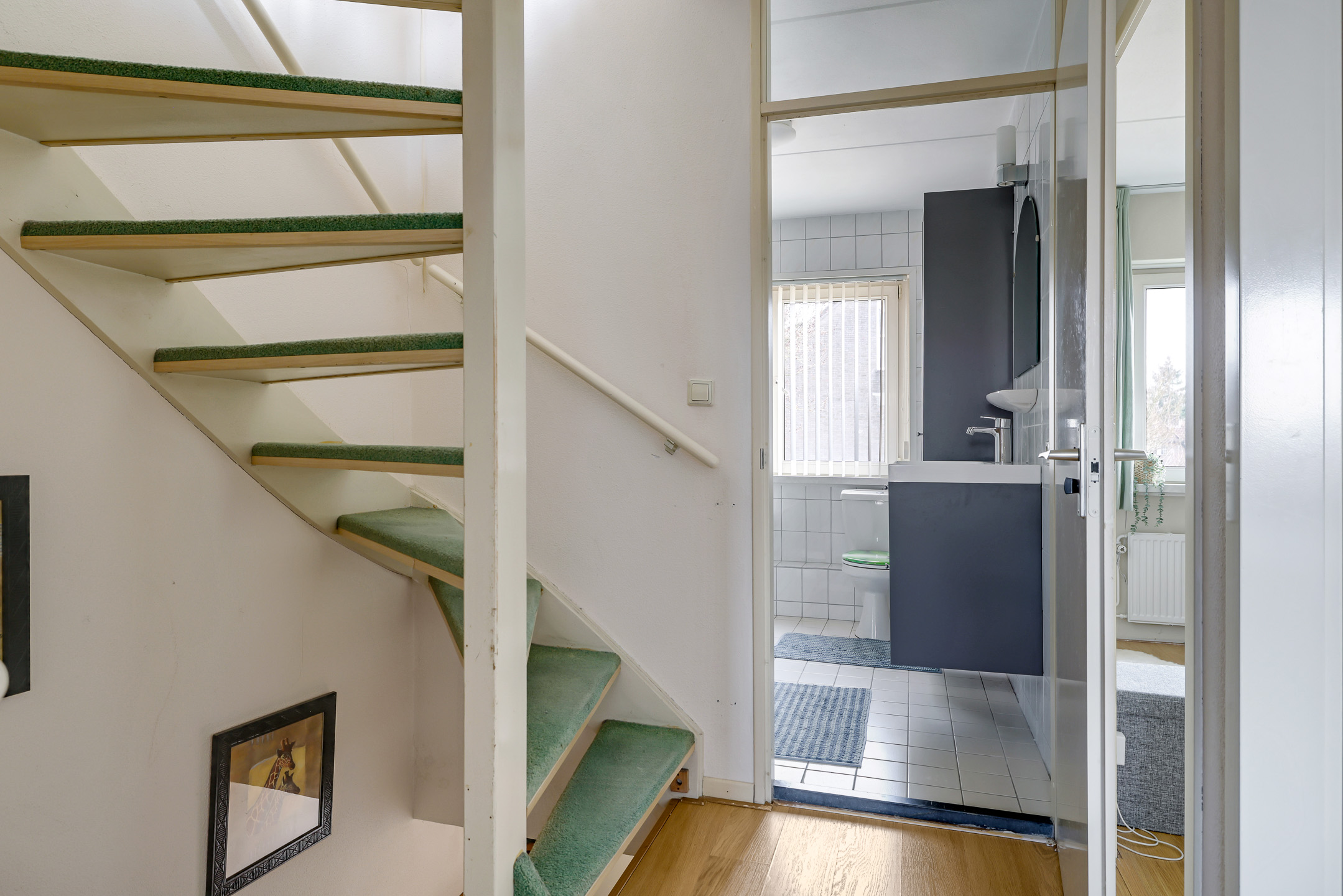 De 2e dakkapel hoort bij de wasruimte die is gecreëerd. Hoe fijn is het om een aparte ruimte te hebben waar je de was kunt laten drogen. En dan helpt de dakkapel (met draai/kiepfunctie) ook zeker bij het ventileren van de ruimte. Er is niet alleen plaats voor een wasmachine en wasdroger, maar ook nog voor een vriezer en een linnenkast. Handig wanneer je bijvoorbeeld seizoenskleding wilt opbergen.